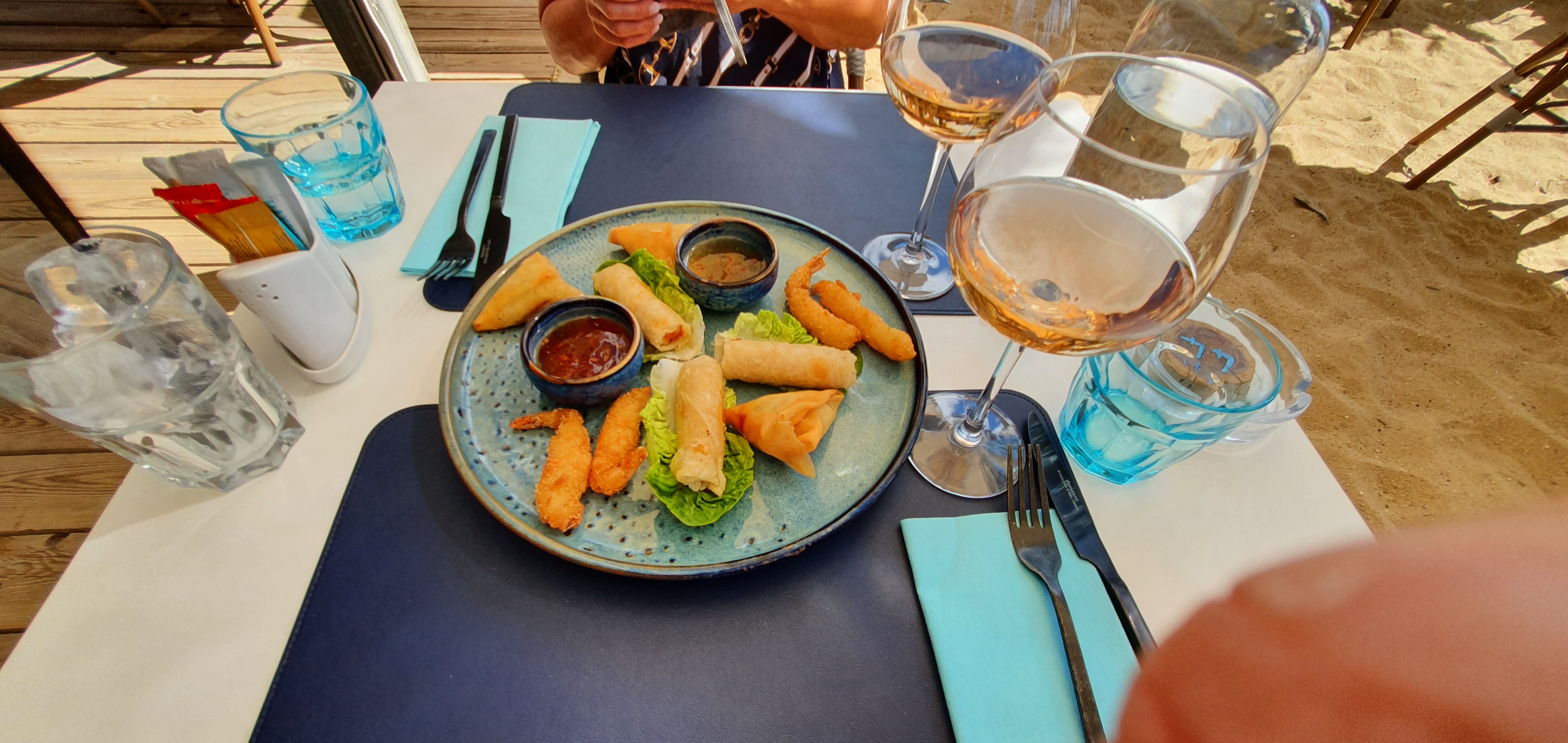 Sympathique moment de détente les pieds dans le sable et face à la mer. Cuisine un peu exotique mais très bonne. Côté restaurant et tapas. Service sympa. Prix très correct. N'hésitez pas.