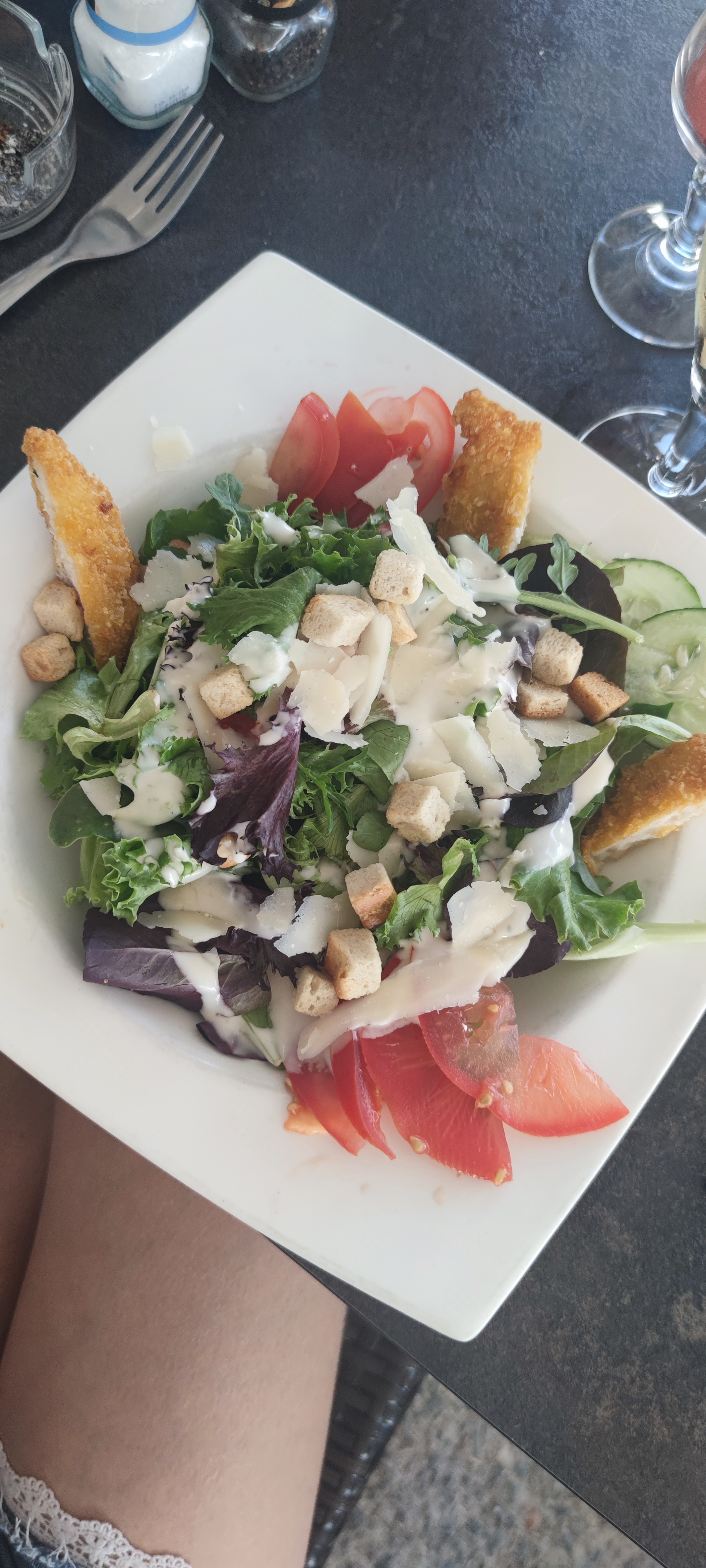 Servie rapidement, mon conjoint et mon avons adoré nos plat, salade César copieuse, magret de canard cuit à la perfection. Le serveur était vraiment super ! Je recommande