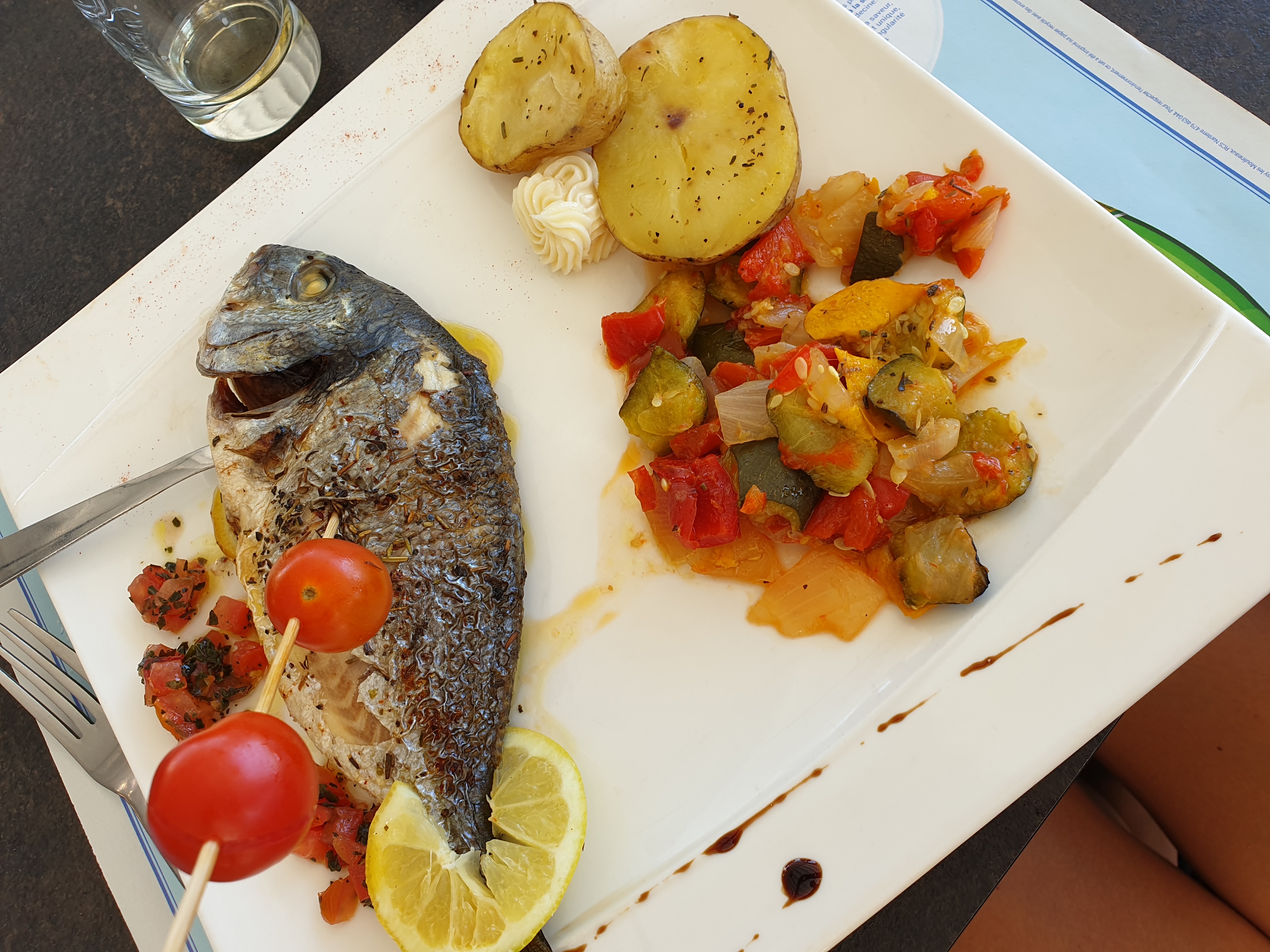 10 ans que je viens et c'est de pire en pire ..... J'ai prit la daurade (ma femme aussi) Accompagnement nul... Risotto qui n'est ni plus ni moins que du riz de cantine. La tuile de parmesan est rassi (ma femme aussi), et la ratatouille a le goût de rien. Heureusement le poisson était cuit à la perfection mais vraiment dommage...