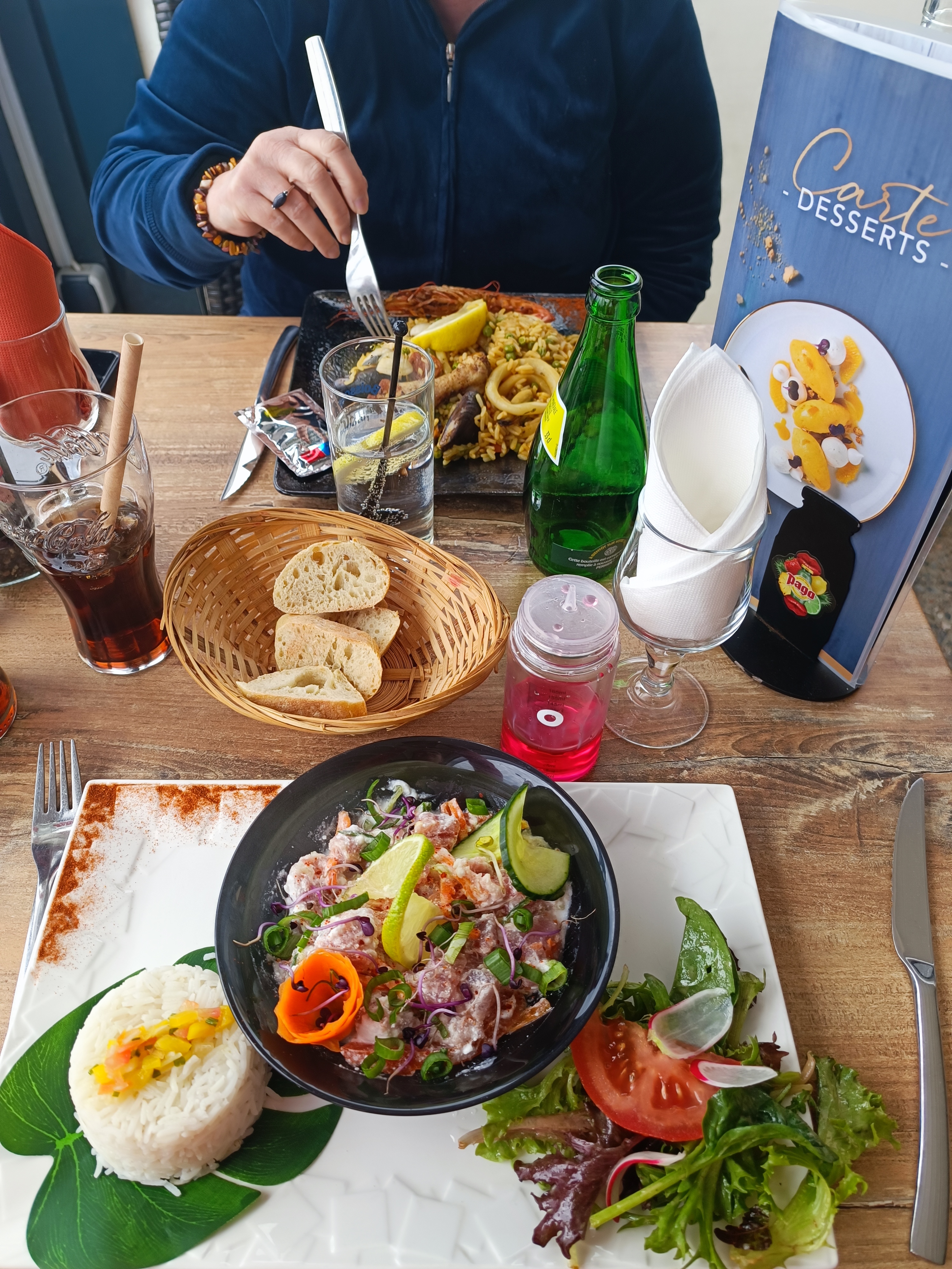 Nous avons très bien mangé paella copieuse et hamburger de la mer un delice avec de vrais frites je le recommande vivement vous ne serez pas déçu