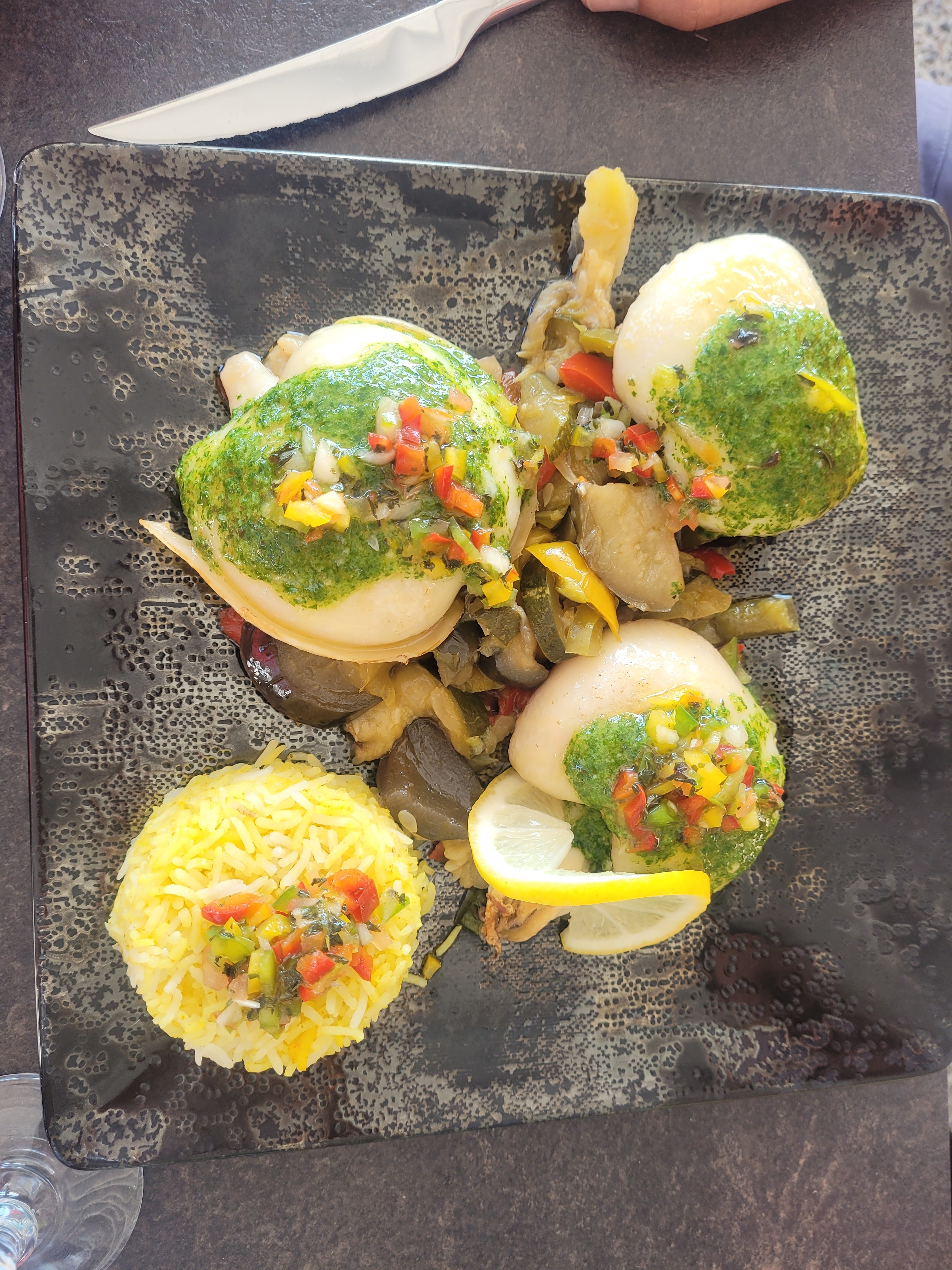 50 min d attente après commande Seiche pleine de flotte, un vrai chewing gum sans goût pour 22 balles les serveurs font ce qu' ils peuvent, pour certain Visite éphémère donc, on est allé prendre le dessert ailleurs
