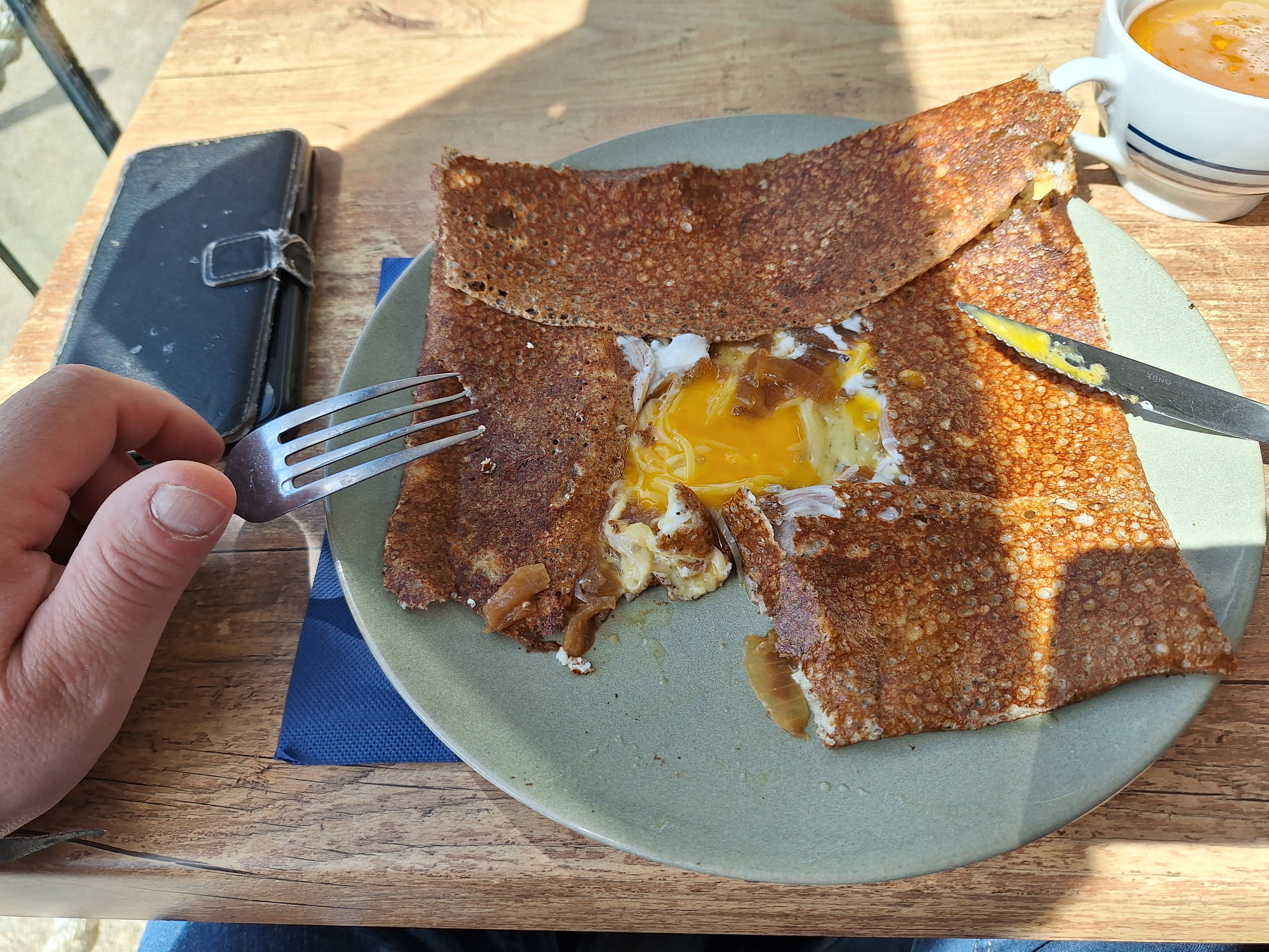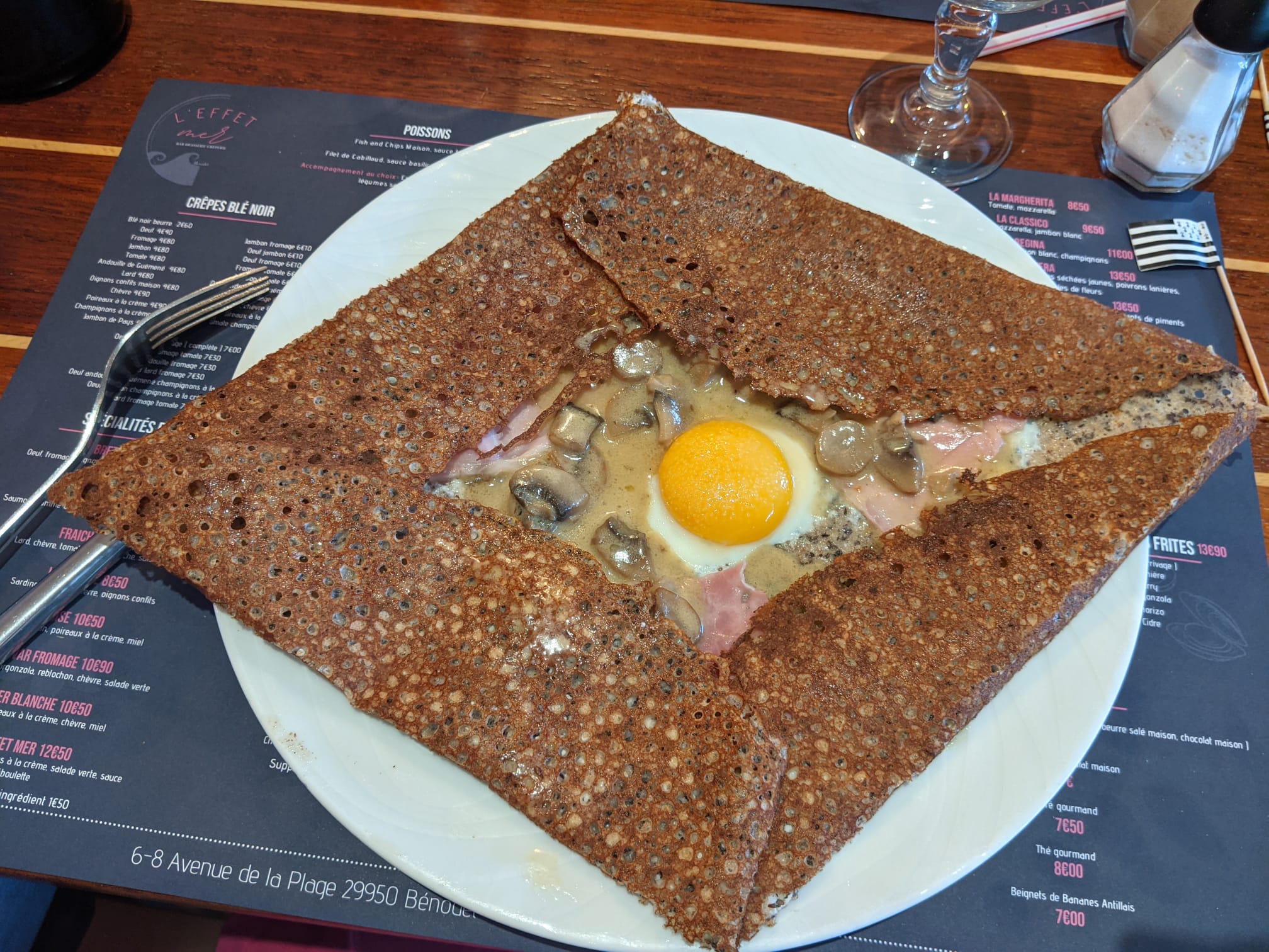 Lieu agréable, personnel souriant. Pour moi, bretonne de haute Bretagne, la crêpe de sarrasin était trop sèche. Je l'aime légèrement craquante, le contenu de la letty était très bon avec sa sauce. Nous avons passés un agréable moment face à la mer.