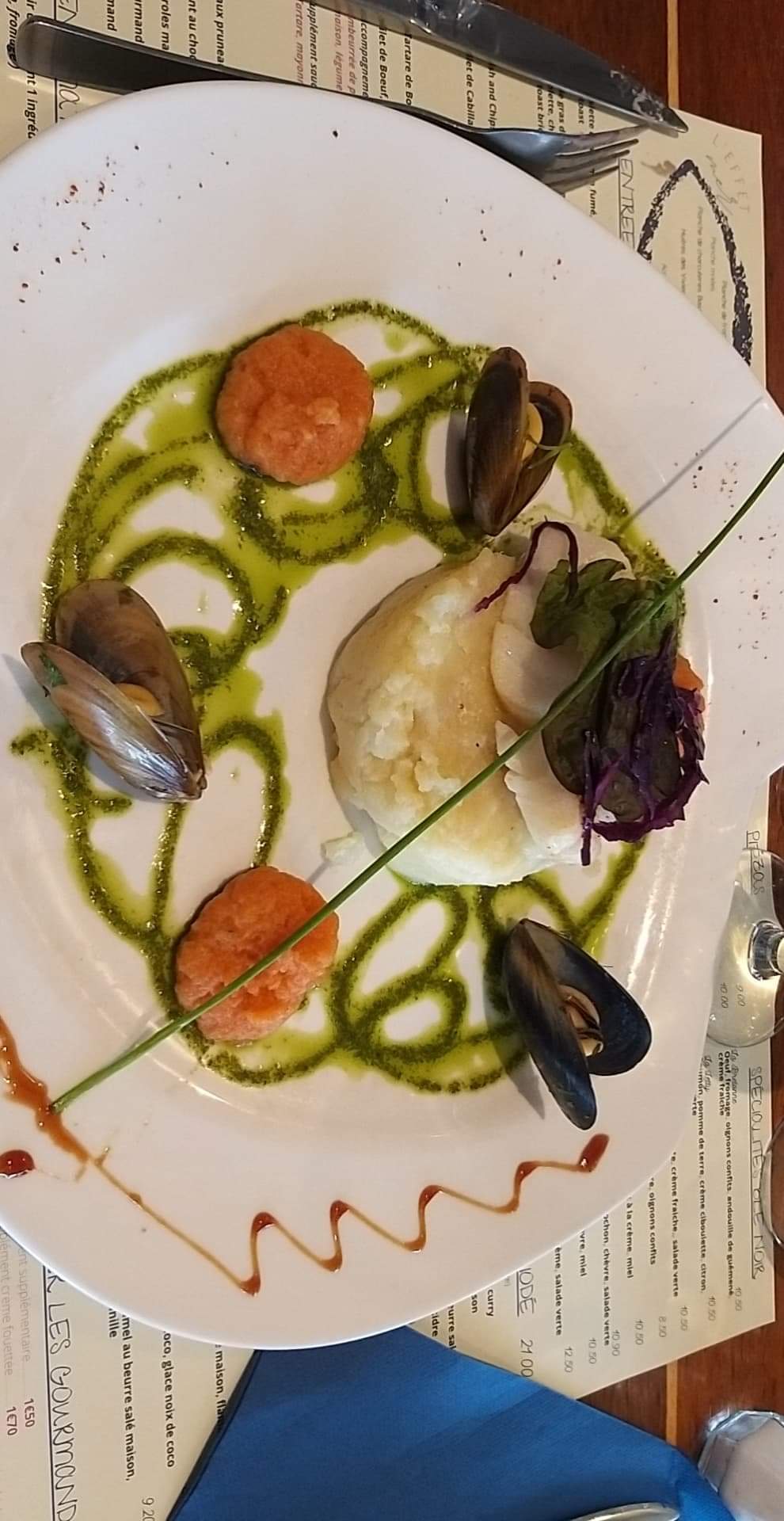 Je recommande ce restaurant. J’ai pris le cabillaud au piment d’espelette avec légumes c’était très bon, cuisson impeccable et légumes de saison. La mousse au chocolat était réussie, copieuse avec une tuile au caramel excellente. Moules frites et crêpes froment délicieuses également. L’accueil et le service sont très agréable.
