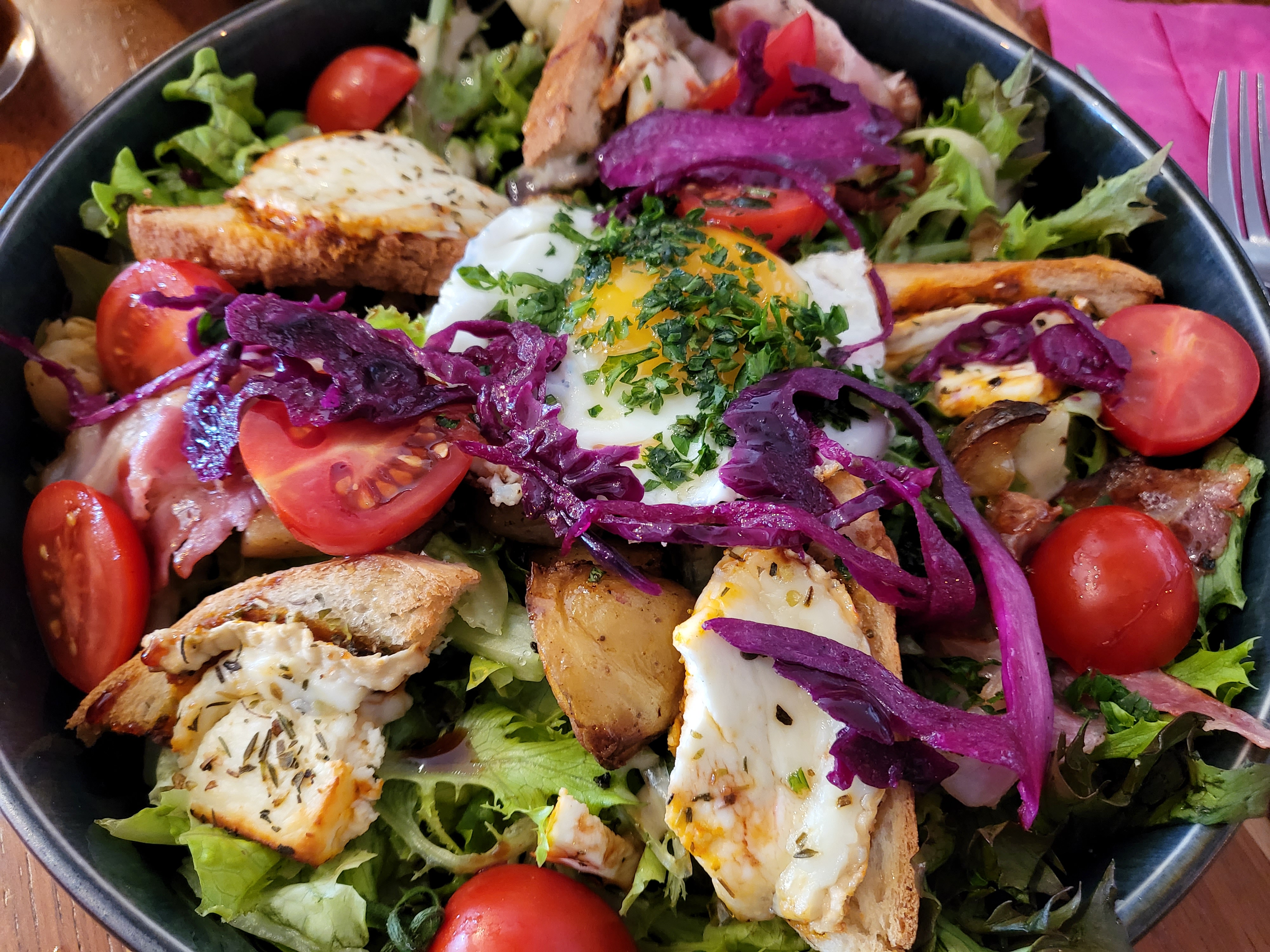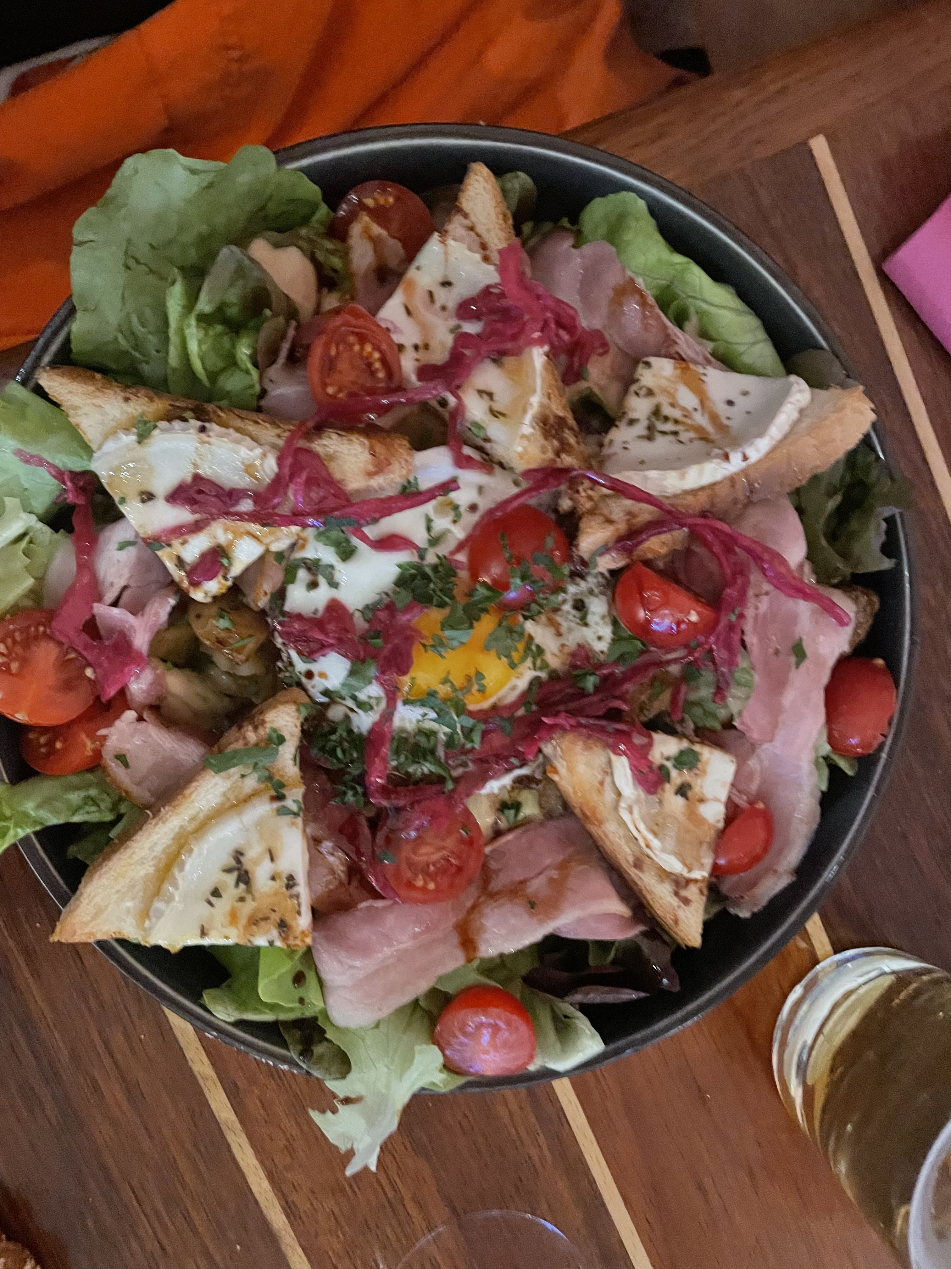 Bonsoir nous sommes venue mangé dans votre établissement pendant notre week-end en amoureux. Nous avons pris deux belles salade césar qui était très bien présenter et très copieuse. Nous voulions finir par une crêpe 🥞 et on était caler merci au personnel de l'établissement