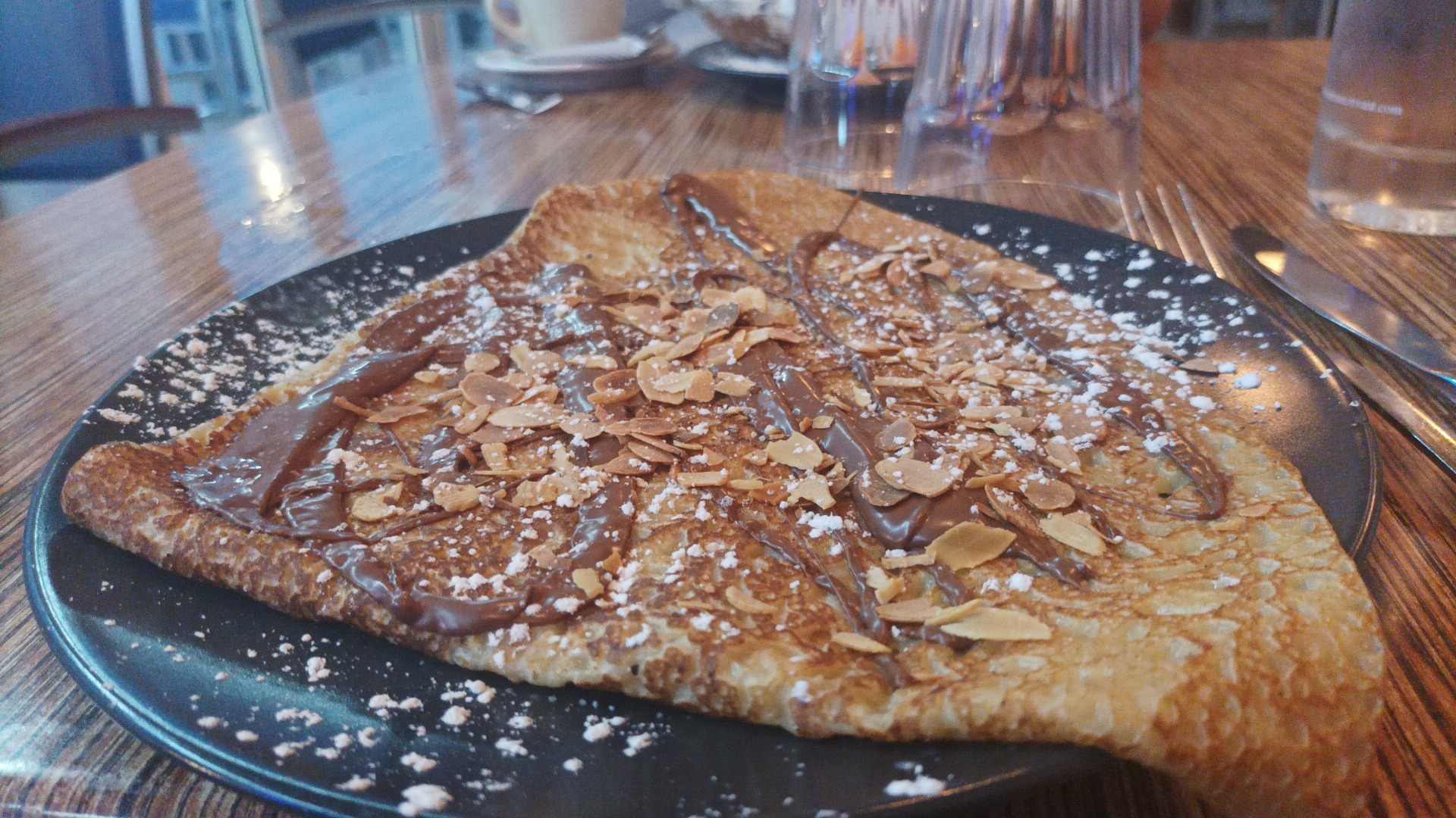 Arrivés à 19h45 nous avons étés très bien accueillis mais l'attente entre chaques plats à été vraiment longues !!! Nous n'avons pas pris de boissons, l'entrée (petit méli-mélo) à été servis à 20h06, les plats (des moules frites au Roquefort) nous ont été servis seulement à 21h et pour les dessert (une crêpe au Nutella et un banana split avec 2 cafés) servis à 21h50 !