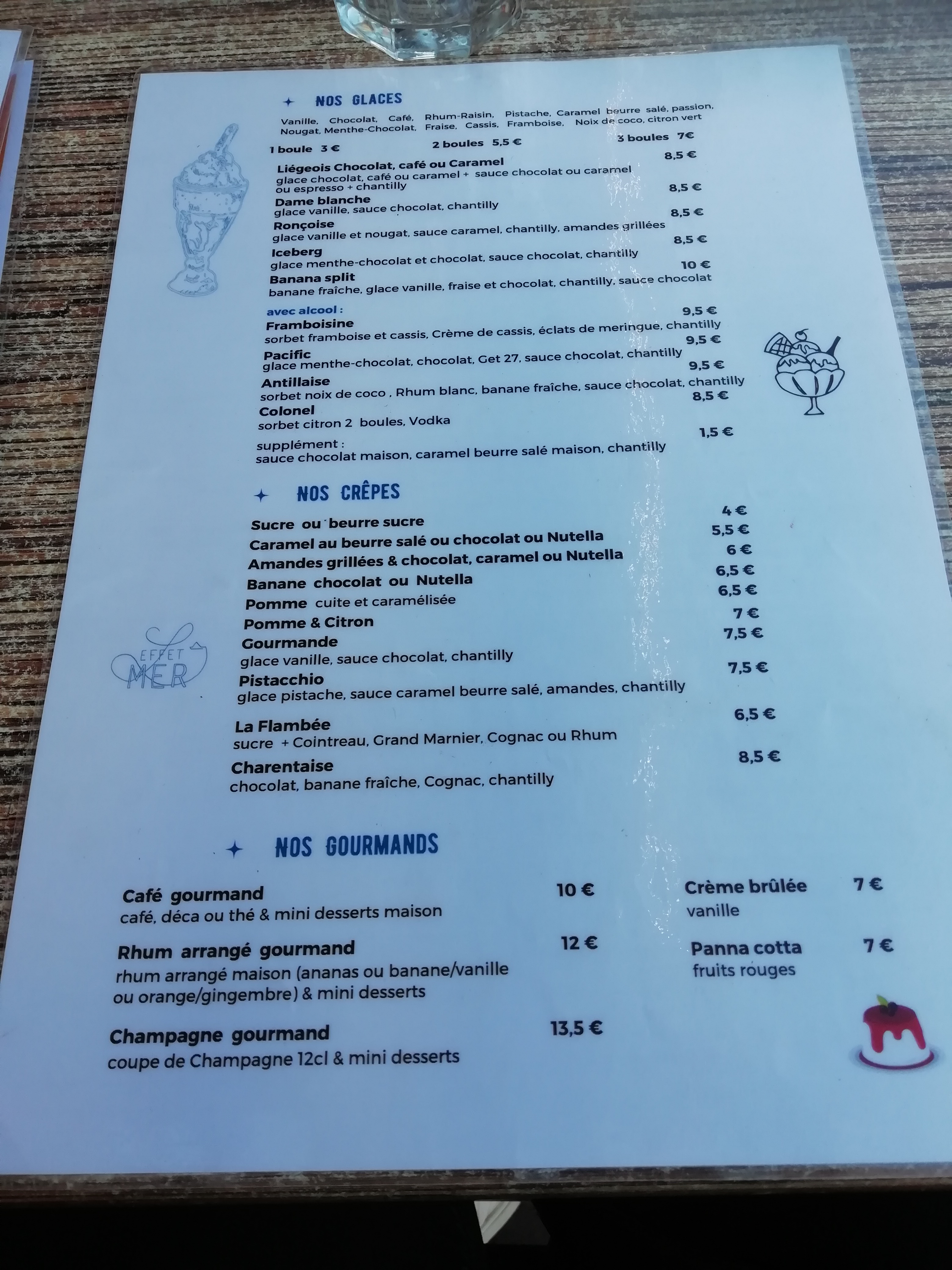 Fins gourmets, venez nombreux ! à L Effet Mer. Il n y a rien d Éphémère, ici. De passage à Ronce avons fait le choix de cet établissement pour sa Devanture agréable ses propositions gourmandes et son accueil courtois et bienveillant. Merci a Mme Yolande et à son collègue barman. qualité ,quantité, un régal. idem pour le service et la présentation des assiettes . Cassolette de la mer, aile de raie pochée, planche apéro, Irish Coffee. Trop bon . Bravo et Merci à Mme la cheffe et à son équipe. Bonne saison à vous,