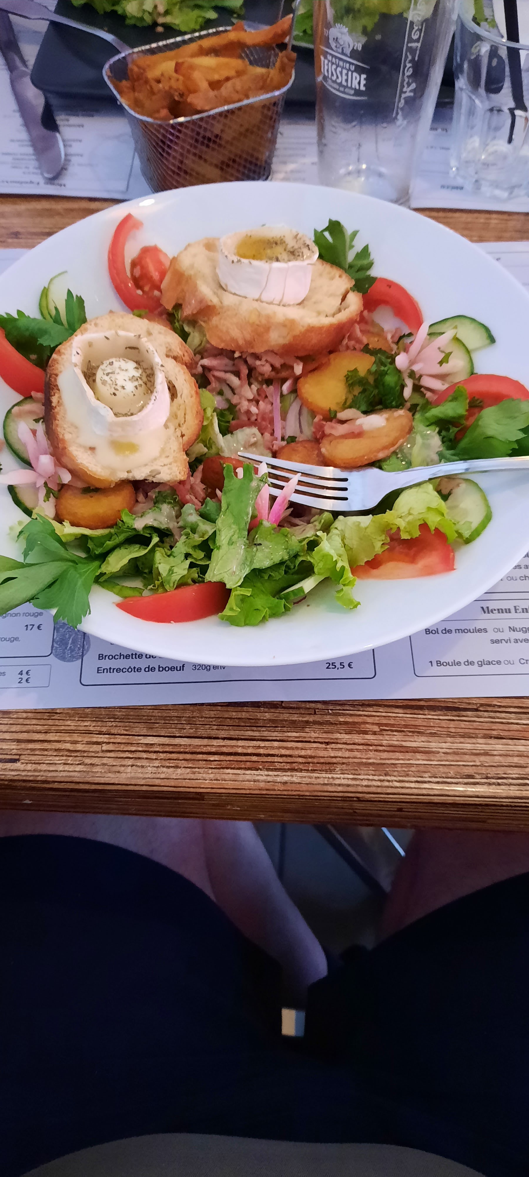 Merci pour ce délicieux repas, j'ai mangé une très bonne salade bien garnie ! Accueil très chaleureux et bonne ambiance.