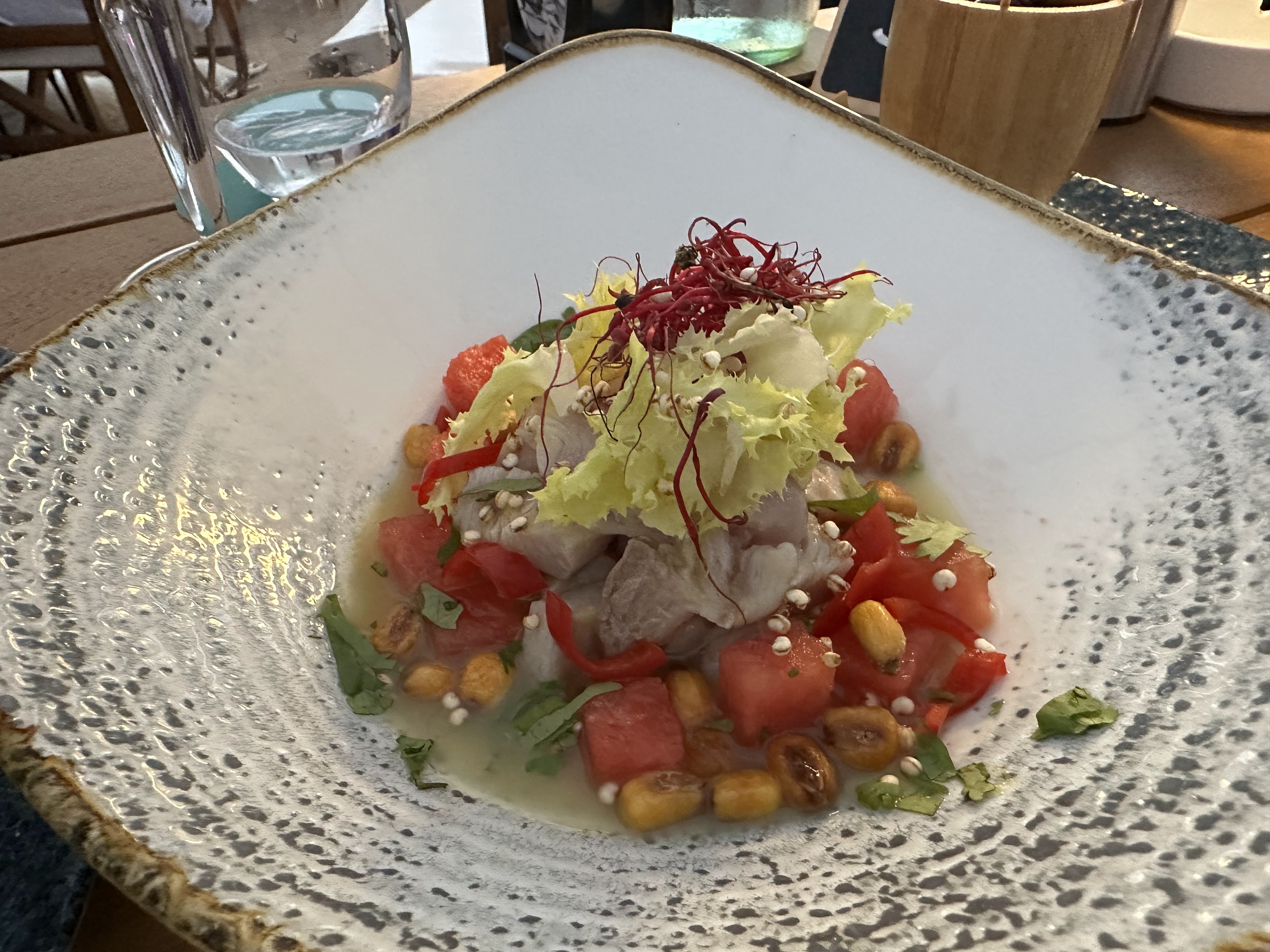 Un service soigné, un vin frais, délicieux Tataki de thon et Ceviche : Un combo gagnant, ou devrais-je plutôt dire: Un triangle Terrific qui nous a mené tout droit vers une soirée que nous ne sommes pas prêts d’oublier !