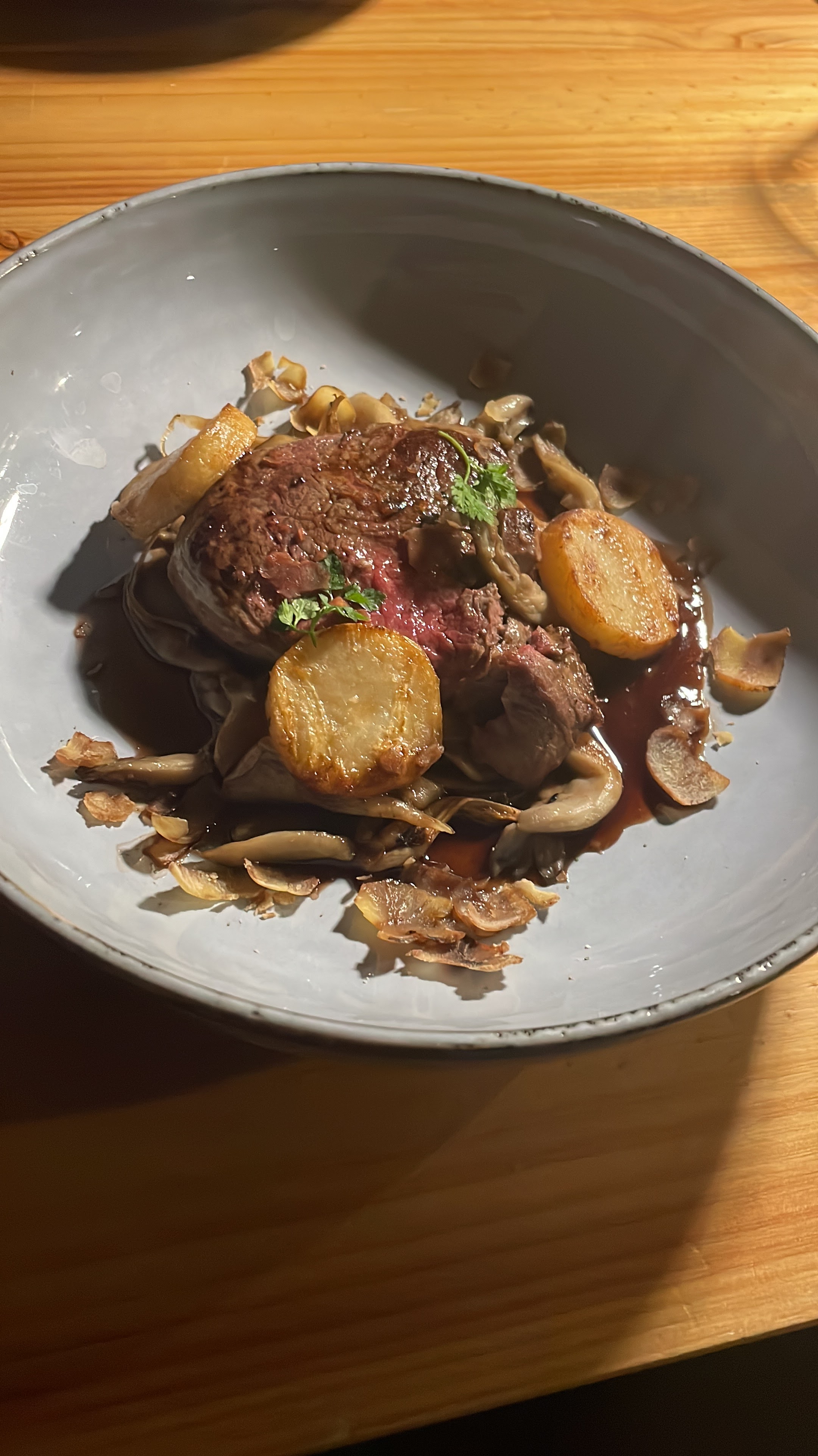 Plat principal bon, viande de qualité , entrée( attention au sel!) et dessert ( mille feuilles pauvre en saveur) prometteurs mais déçu. Cocktail bas de game. Le rapport qualité prix n est pas au rendez-vous.