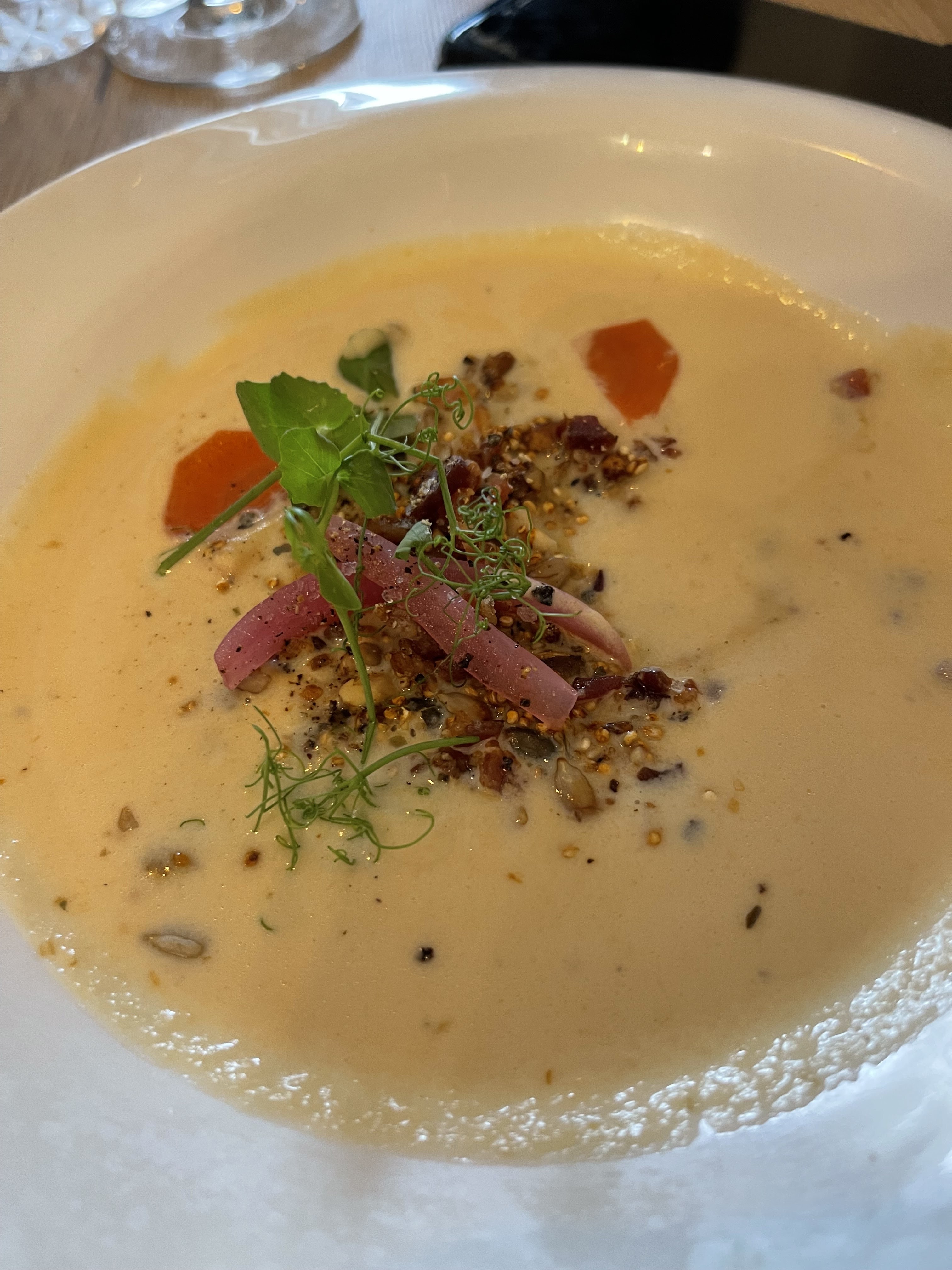 Excellente surprise en plein coeur de Compiègne! Le choix végétarien proposé est très appréciable. Le repas était délicieux tout comme le vin conseillé en accompagnement. Une cuisine délicate et plaisir dans un environnement cozy. Le service était bienveillant, doux et souriant. Au plaisir de revenir une prochaine fois ! Et encore une fois bravo pour ce projet porté dans un contexte peu engageant: c’est courageux et ça donne espoir 🙂 Merci à vous !