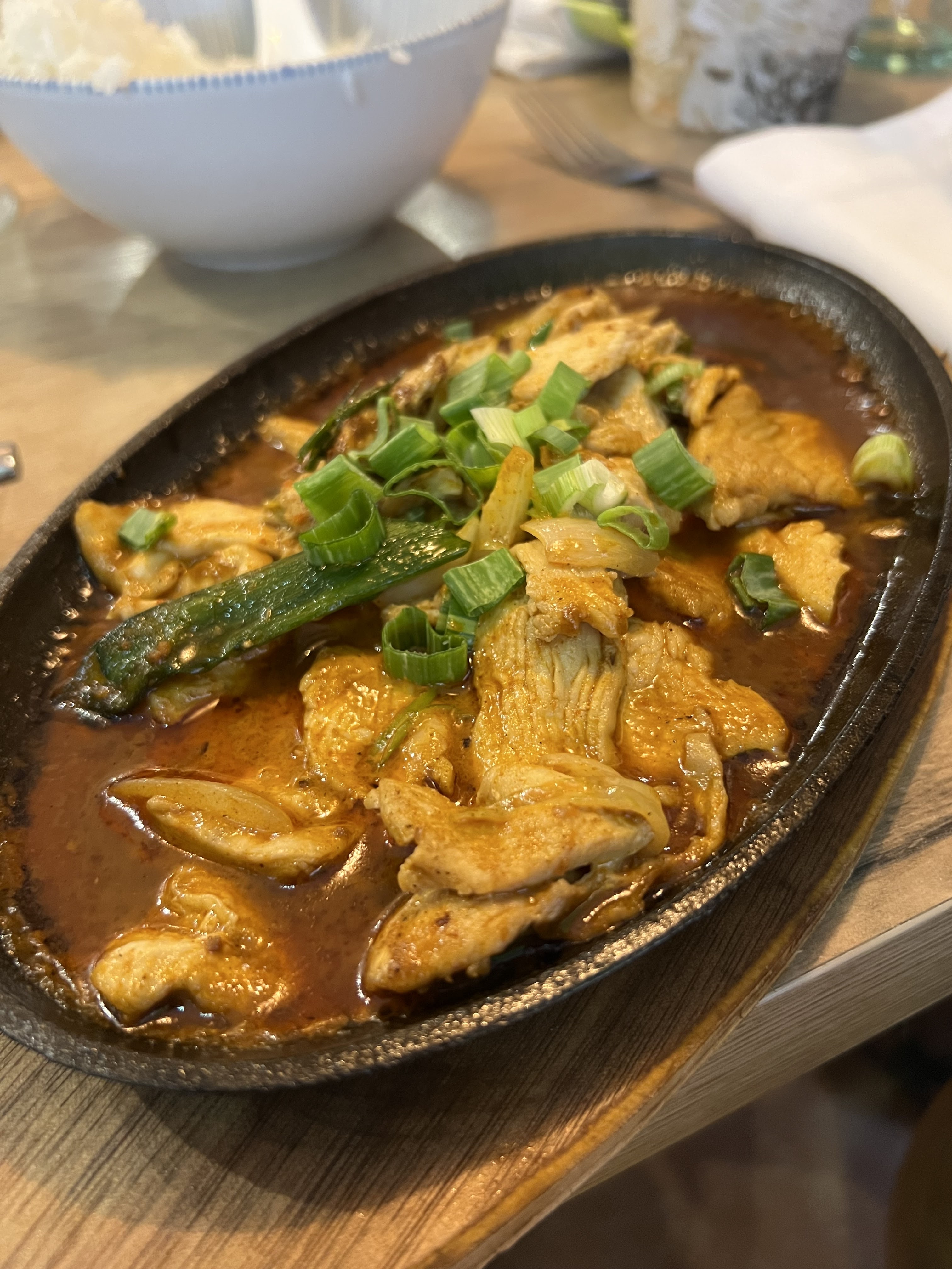 Beau restaurant. Le personnel (et le propriétaire ?) étaient très hospitaliers et attentionnés. Une expérience tellement agréable et la nourriture (brochette de poulet et tofu la sauce agre douce) était délicieuse. Si vous cherchez une boisson alcoolisée, je recommande vraiment l'Amaretto !