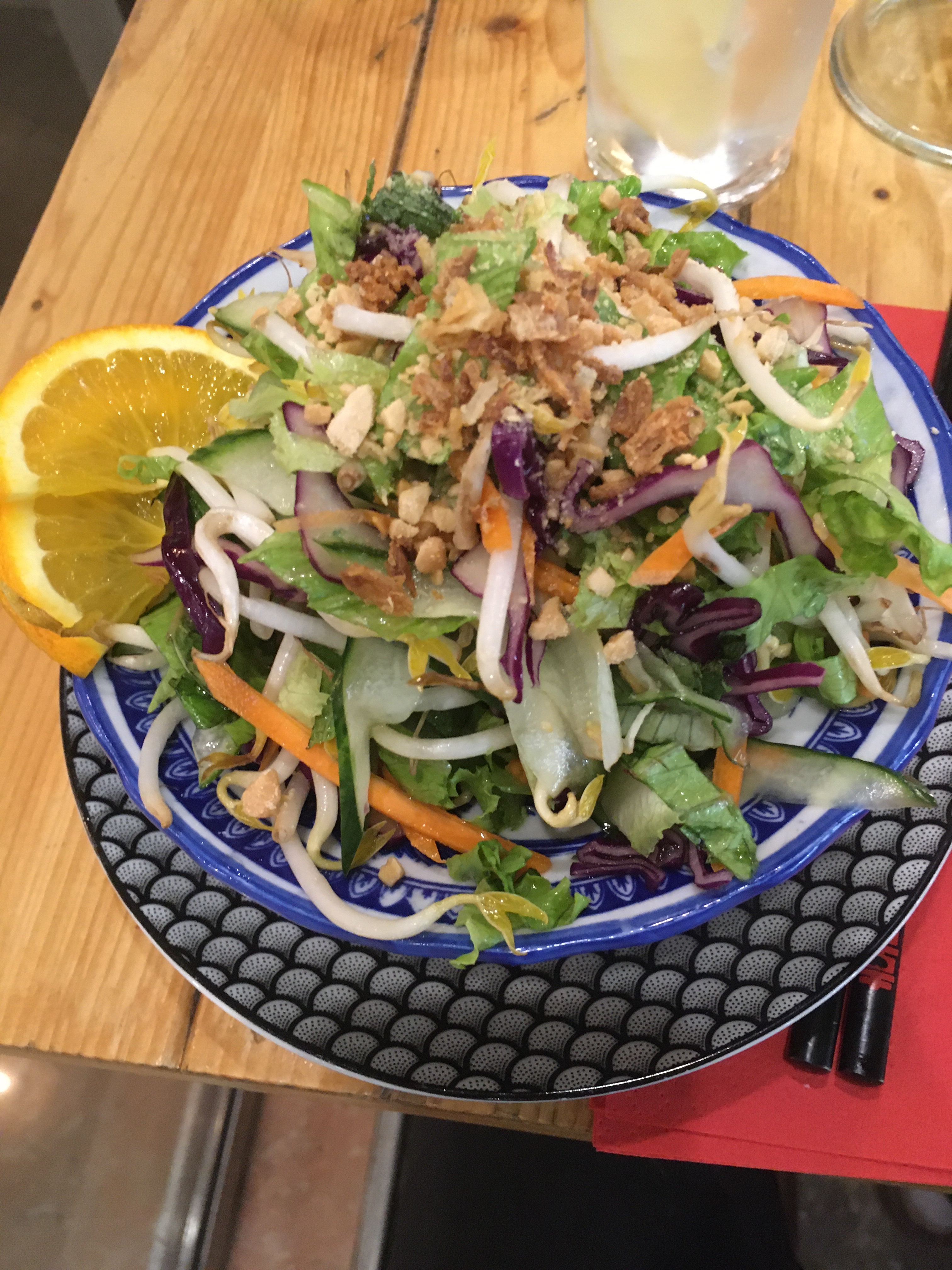 Des plats incroyablement savoureux et frais ! De grosses portions avec une cuisine asiatique saine et superbe qui nous ont fait très plaisir ! Notre serveur était nouveau dans son travail et absolument génial, et a rendu notre repas très agréable. Des prix raisonnables et aussi fortement recommandés que possible !