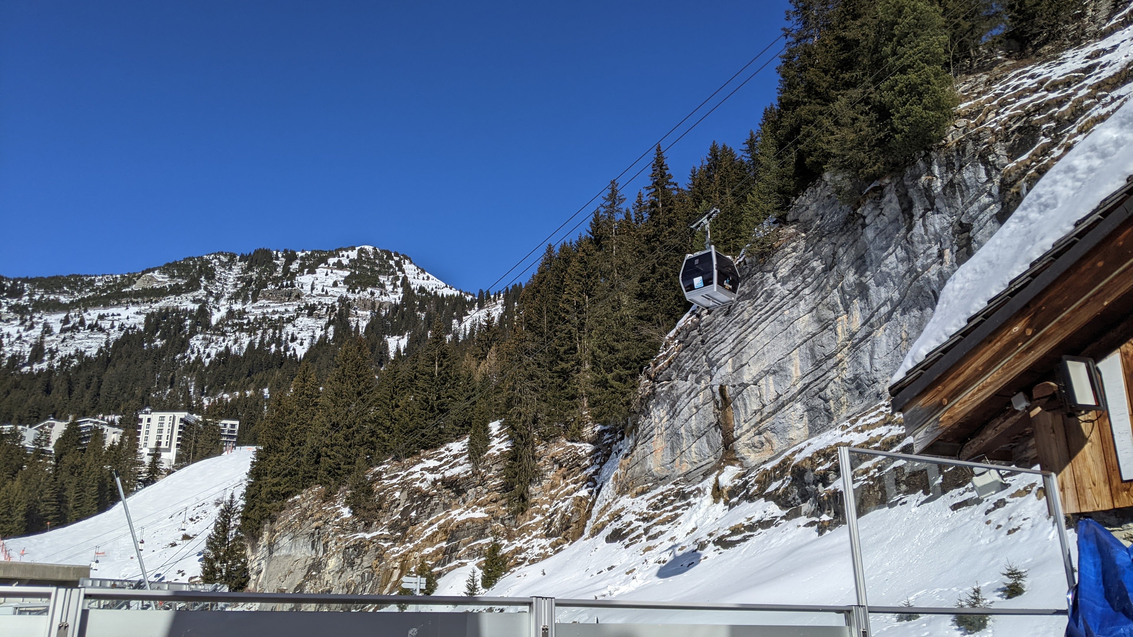 Excellent personnel et position sous la télécabine DMC. Un litre de Vin Rouge à 17h50, ça ne peut pas être mauvais !