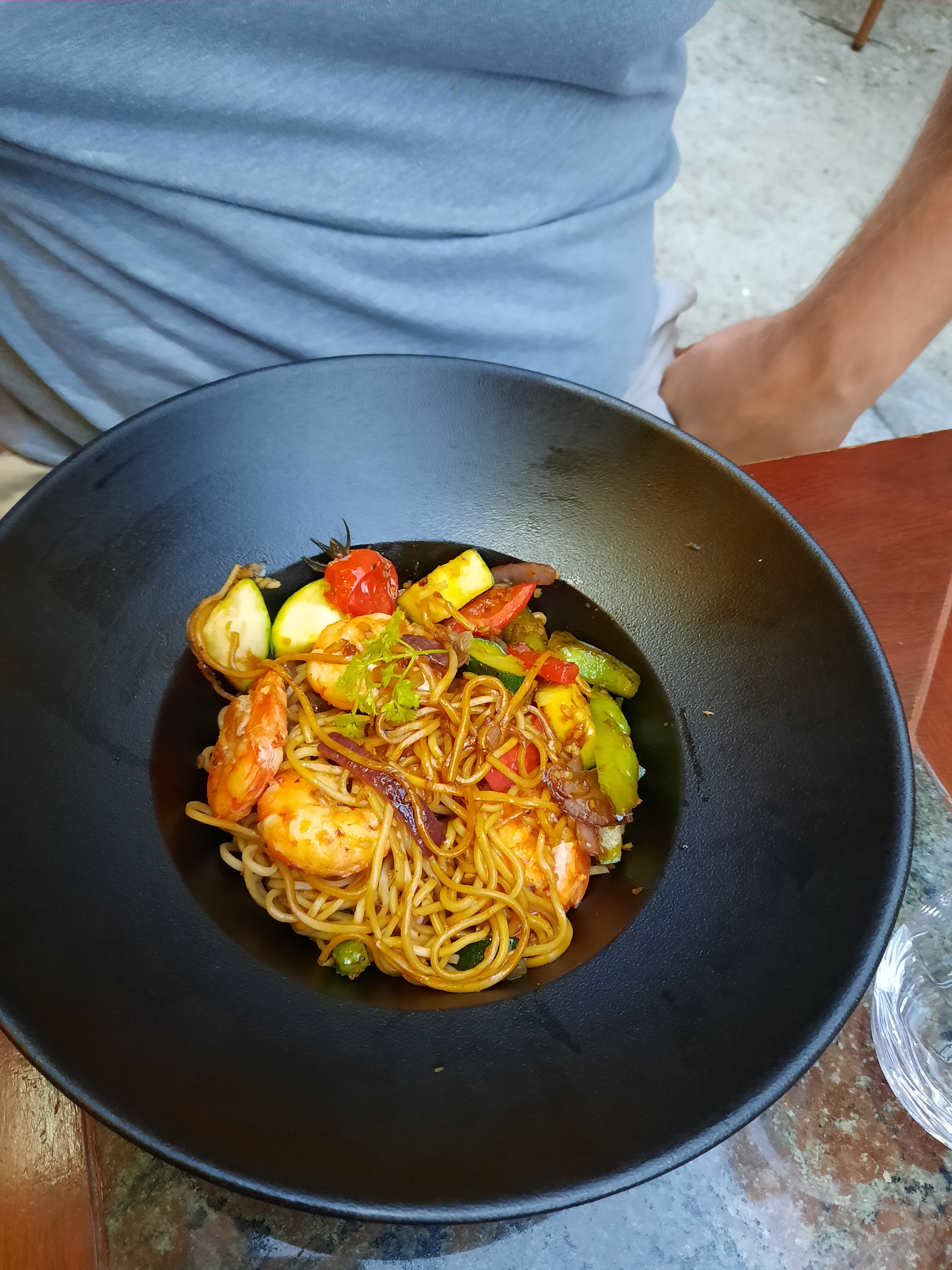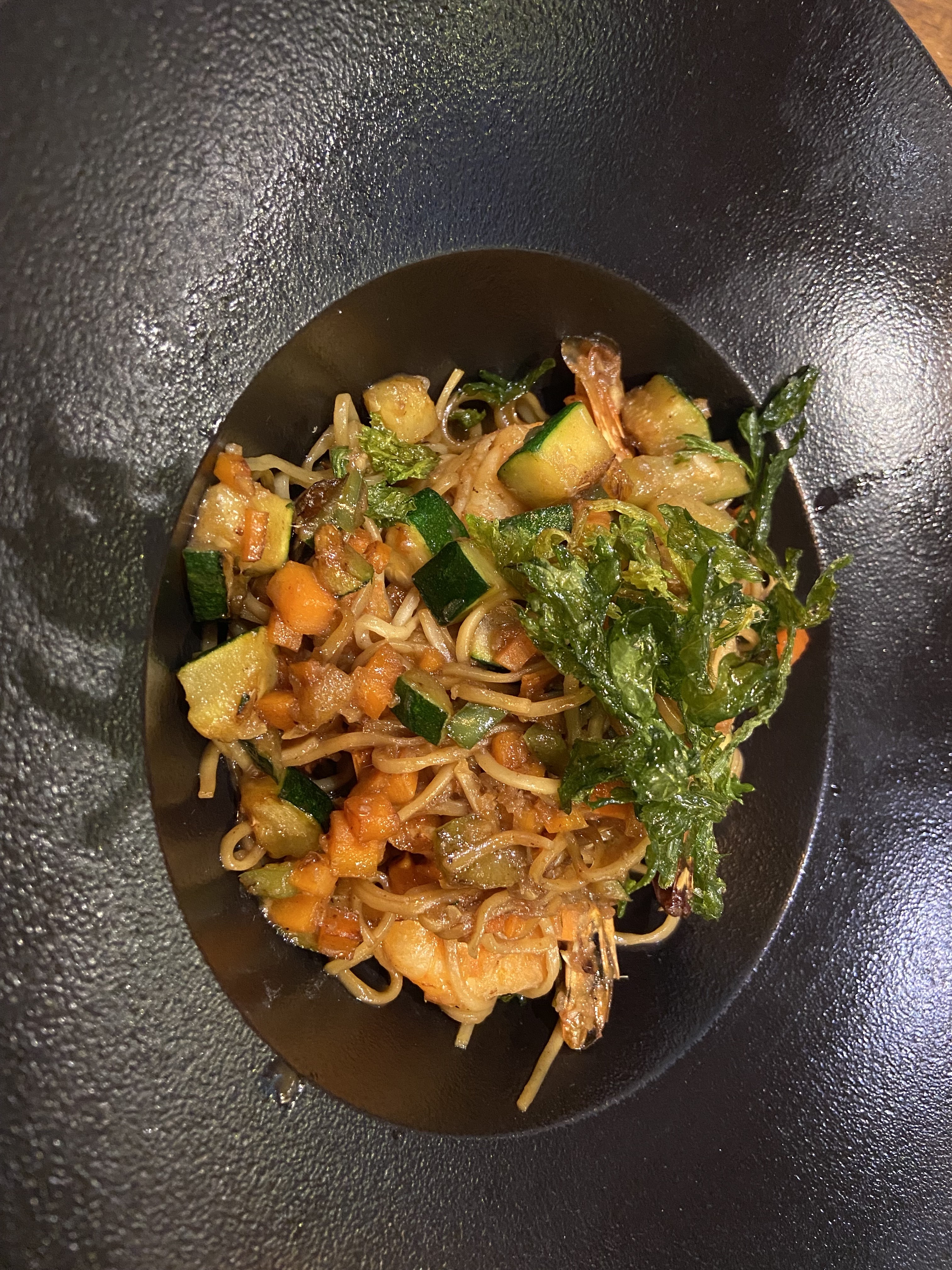 LES FRUITS DE MER SONT FRAIS, PEU CHER POUR LES PLATS PRINCIPAUX MÉDIOCRES, BON SERVICE, COSY Place. Nous avons été chaleureusement accueillis par une charmante serveuse qui nous a placés mon partenaire et moi-même à côté de l'aquarium, qui était le plus confortable. Nous avons tous deux pris le menu. Il a pris le saumon à la crème de ciboulette, les moules à la crème et j'ai pris le plateau de fruits de mer (crus et cuits). C'était vraiment bon, tout était frais. La présentation dans l'assiette n'a rien d'extraordinaire mais la nourriture était bonne. Ensuite, mon partenaire a pris un magret de canard avec une sauce au poivre et des pommes de terre. Il a aimé ça. J'ai eu les nouilles gambas au wok et bien.... C'était vraiment dégoûtant. Comme BEAUCOUP TROP SALÉ et BEAUCOUP TROP GRAIS. Comme vous pouvez le voir sur la photo, les pâtes brillent d'huile. Le goût était dégoûtant et je ne pouvais rien manger. J'ai néanmoins demandé à la serveuse de l'emballer, car techniquement, je devais encore payer pour cela, pensant que je rincerais au moins les crevettes et les mangerais plus tard. Le prix était d'environ 72 euros pour les deux sans désert. J'ai trouvé le prix un peu cher au vu de la présentation des assiettes très médiocre, du manque de créativité du tout et du mauvais goût du repas que j'ai pris. Pourtant, le service était au rendez-vous du début à la fin. Les serveuses étaient adorables.