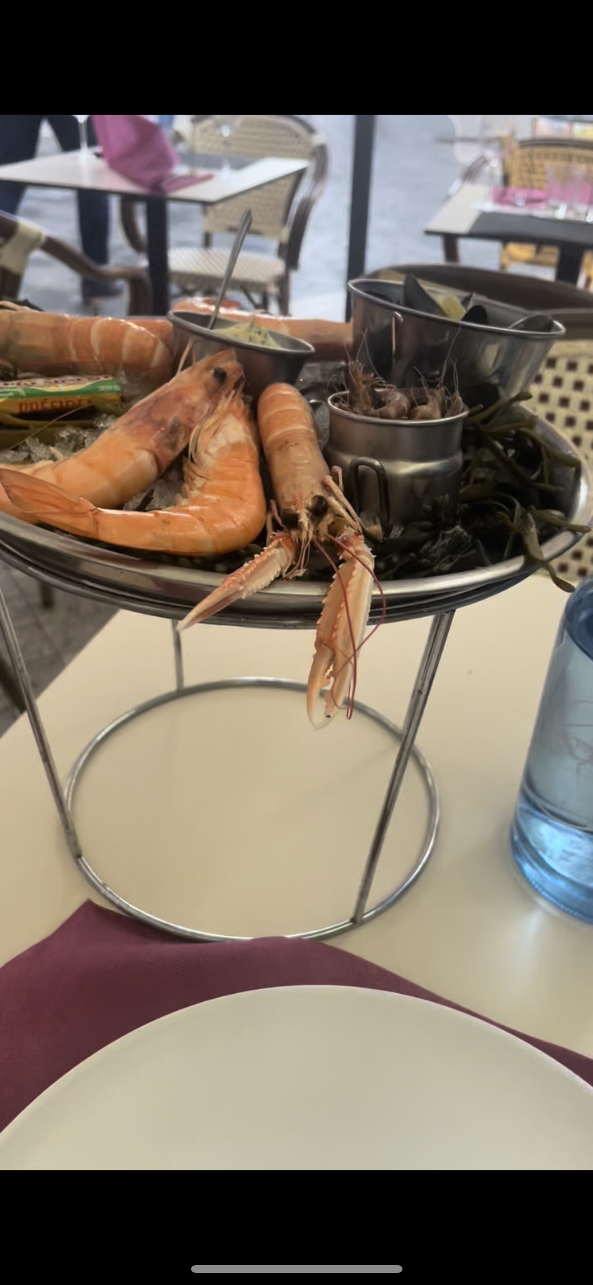 Ce qui nous a le plus déçu c le service on est obligé de demander à ce qu'on nous débarrasse les assiettes et la dame a côté de nous a manger sin dessert avec des débris de crustacés sur sa nappe le plateau était bon mais manquait de fraîcheur et les moules si petites et sans gout