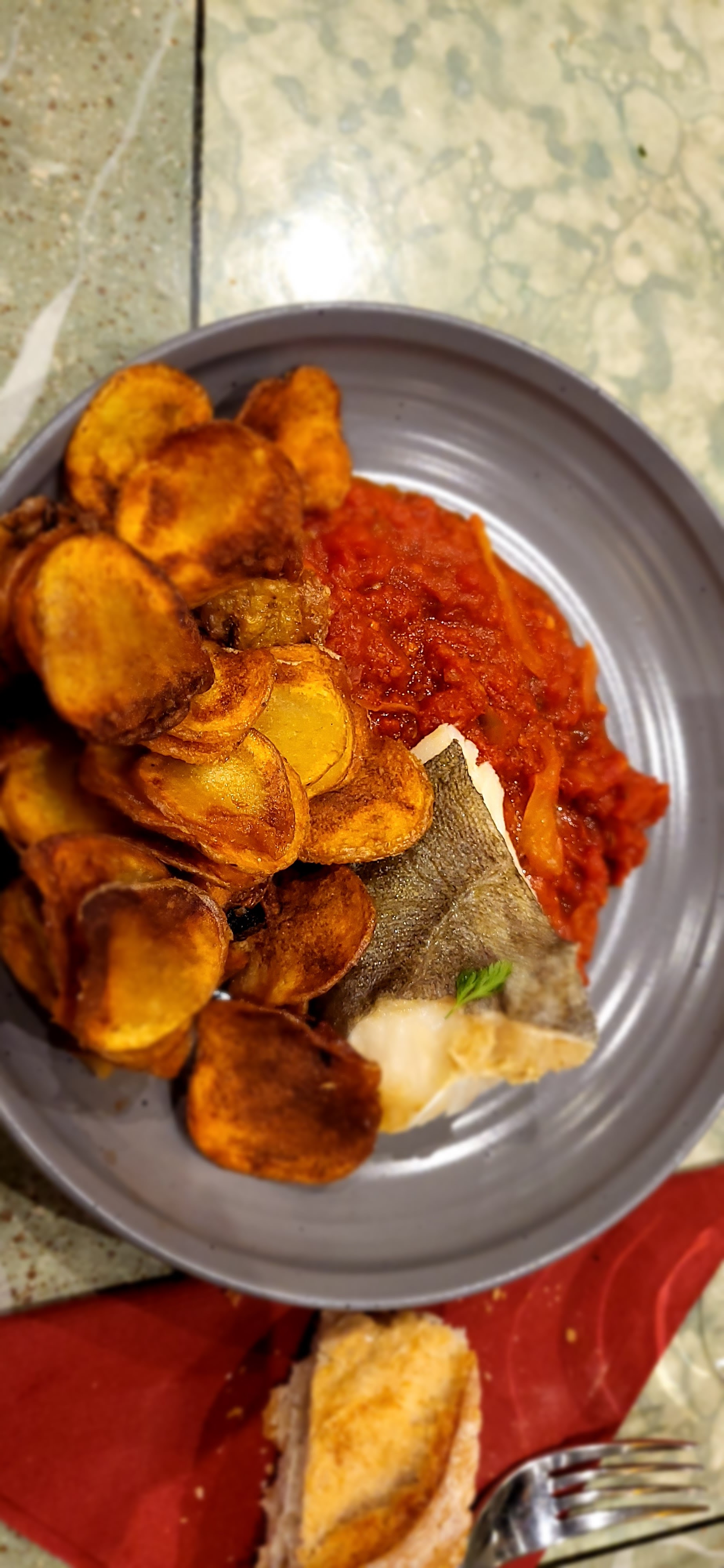 Nous avons commencé par une soupe de poissons qui était trop salée et ne semblait pas être faite maison. Quant aux gambas aux nouilles sautées, ce n'était pas des gambas mais de simples crevettes. Et le comble ce fut le plat de morue qui était du cabillaud plus que fade servi avec des chips durs et brûlés que l'on a laissé dans l'assiette. Nous avions l'habitude de venir régulièrement ici mais là ce n'est plus possible. Nous ne reviendrons plus.
