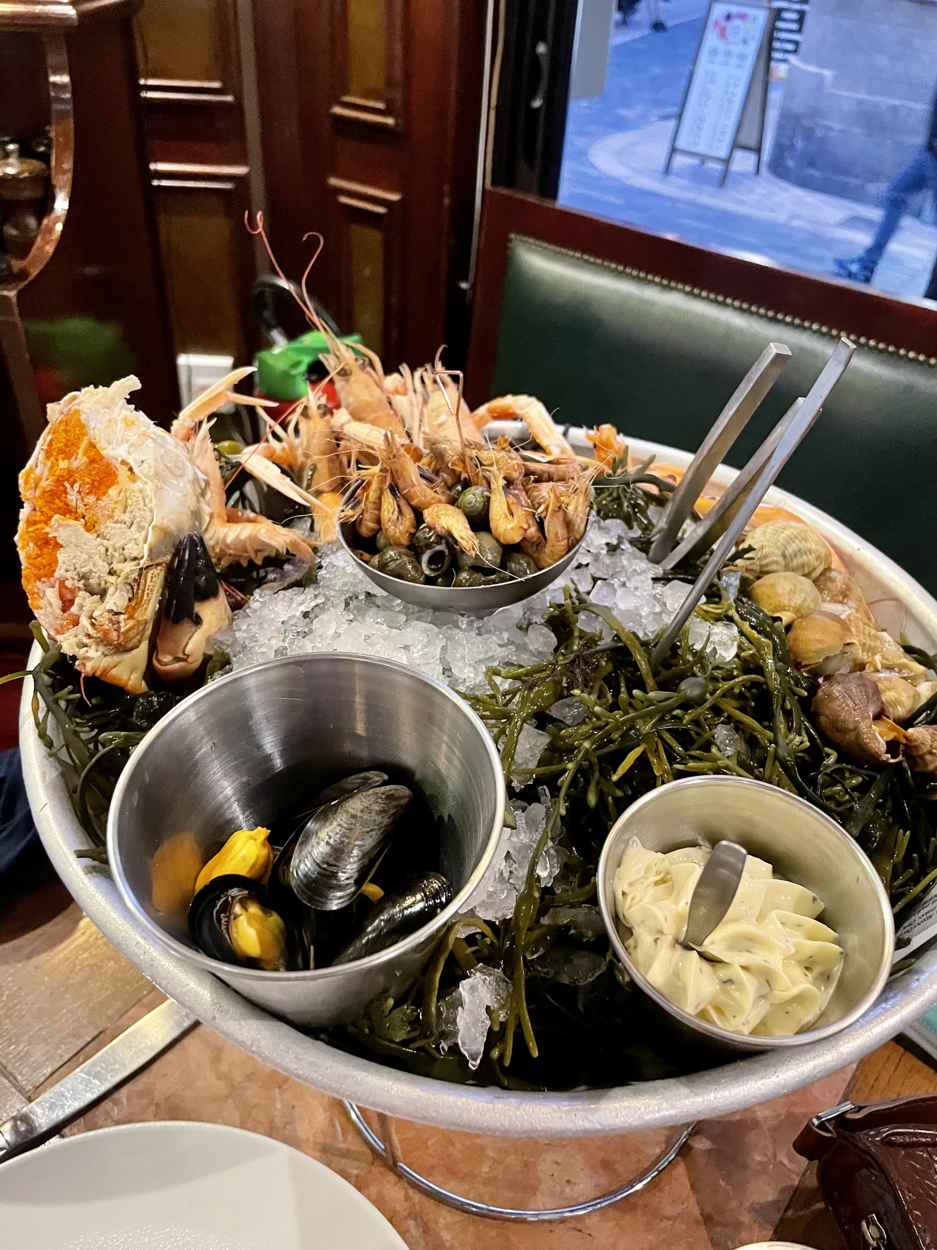Plateau de fruits de mer décevant pour une raison simple, ils ne sont pas frais. Les huîtres, notamment, semblent déshydratées et ont été ouvertes il y a quelque temps. Le reste est juste normal, rien de spécial. Wound vous recommande vivement d'aller à la marche des capucins si vous voulez des fruits de mer frais.
