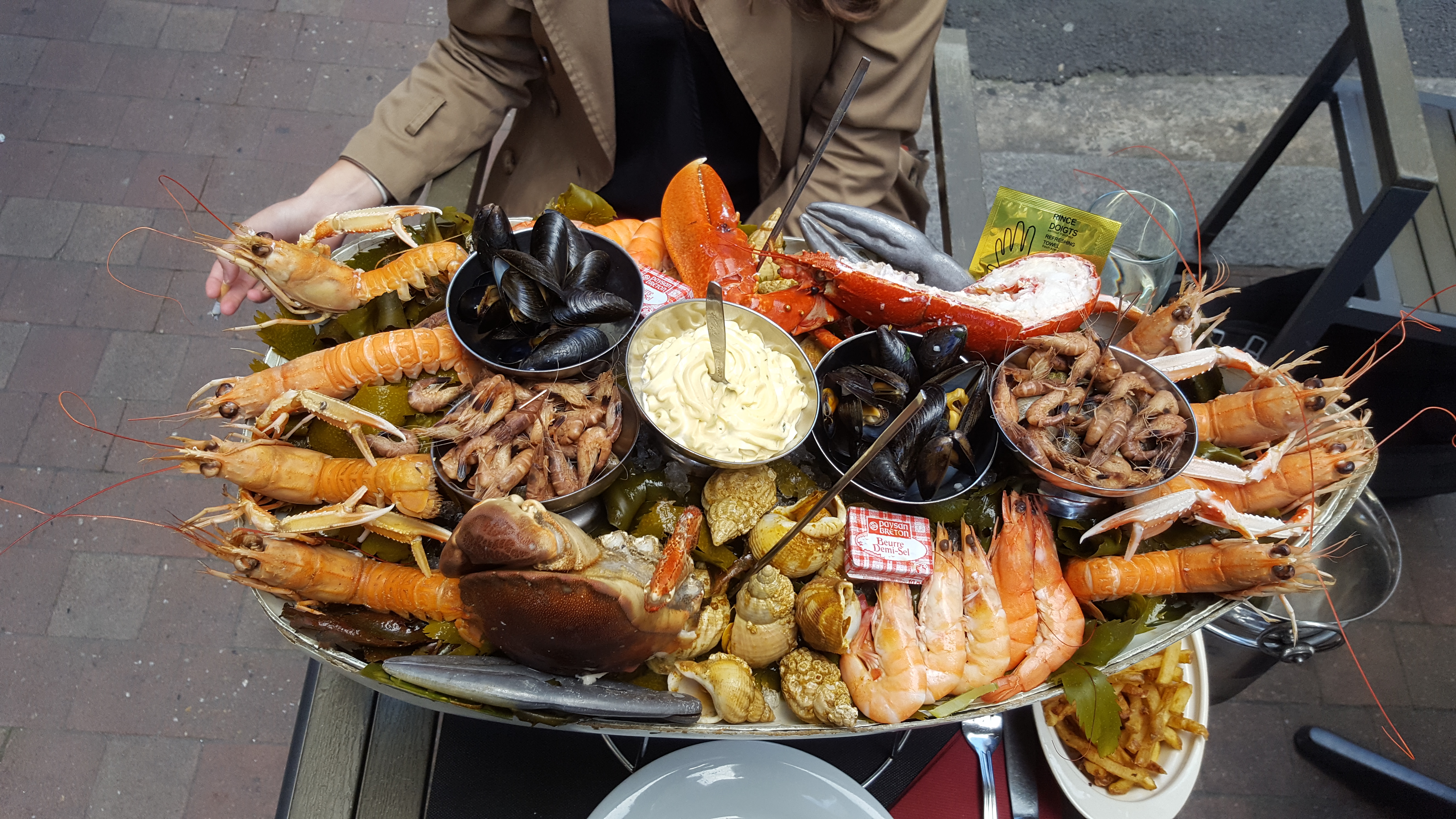 Très bien accueilli pour un repas très moyen. Je trouve le plateau un peu chère pour le contenu. Crevettes grise mal cuites, impossible à décortiquer, langoustine pas du jour? Tourteau sans pattes et presque vide donc juste une pince! Et le pain est sec. Franchement pas top! Les grandes surfaces fond mieux pour la moitié du prix.