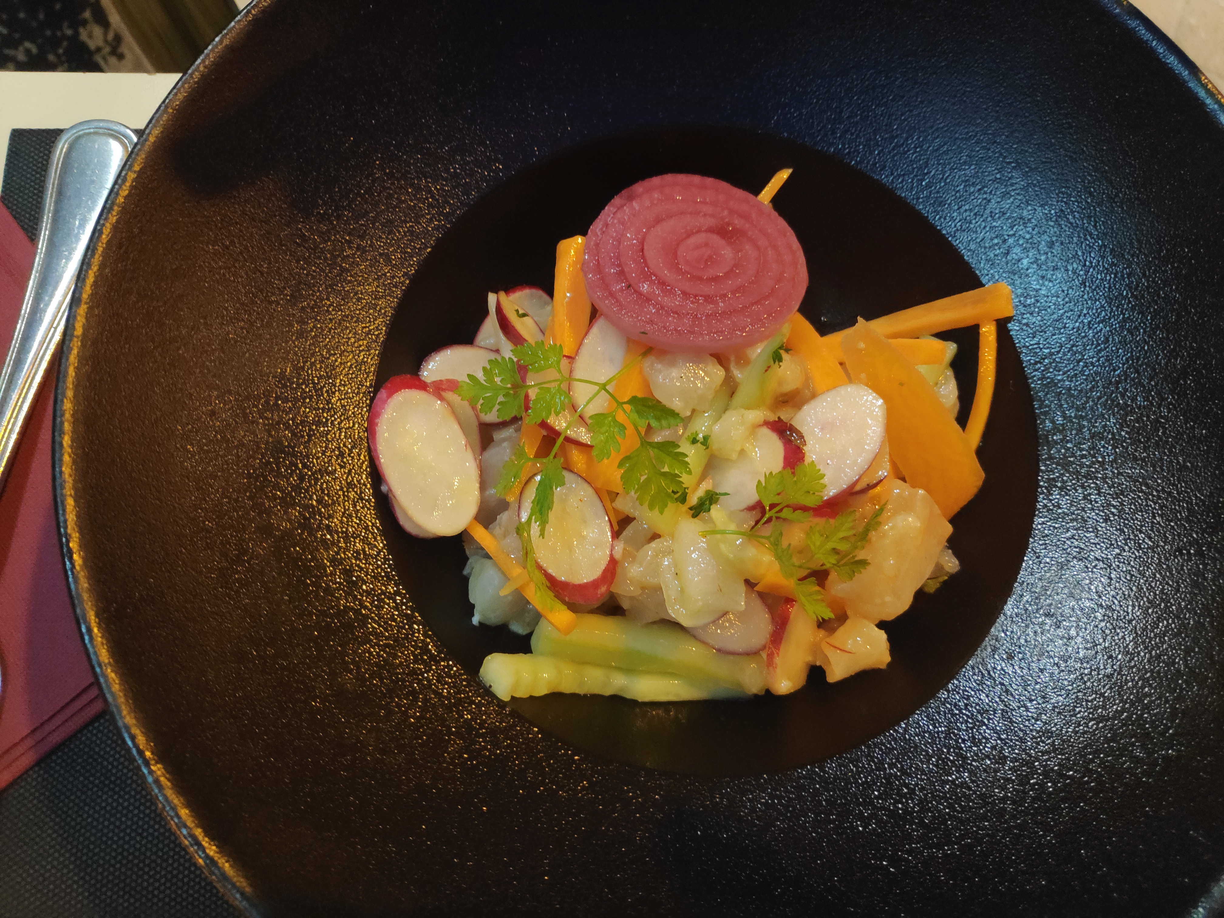 Très bonne soirée : On s’est régalé avec le ceviche et la trilogie de poissons et coquillages. Personnel très sympa et attentif.