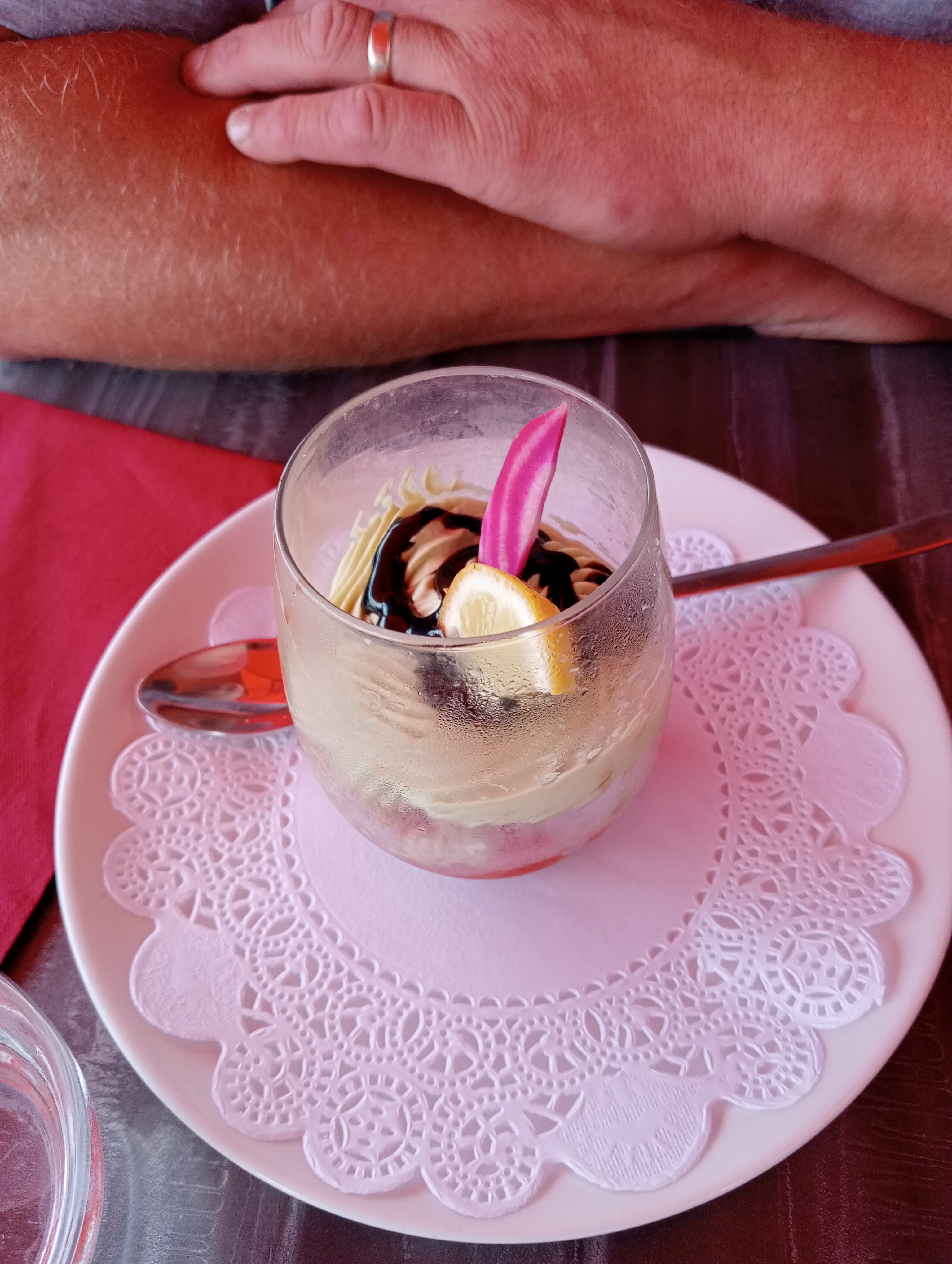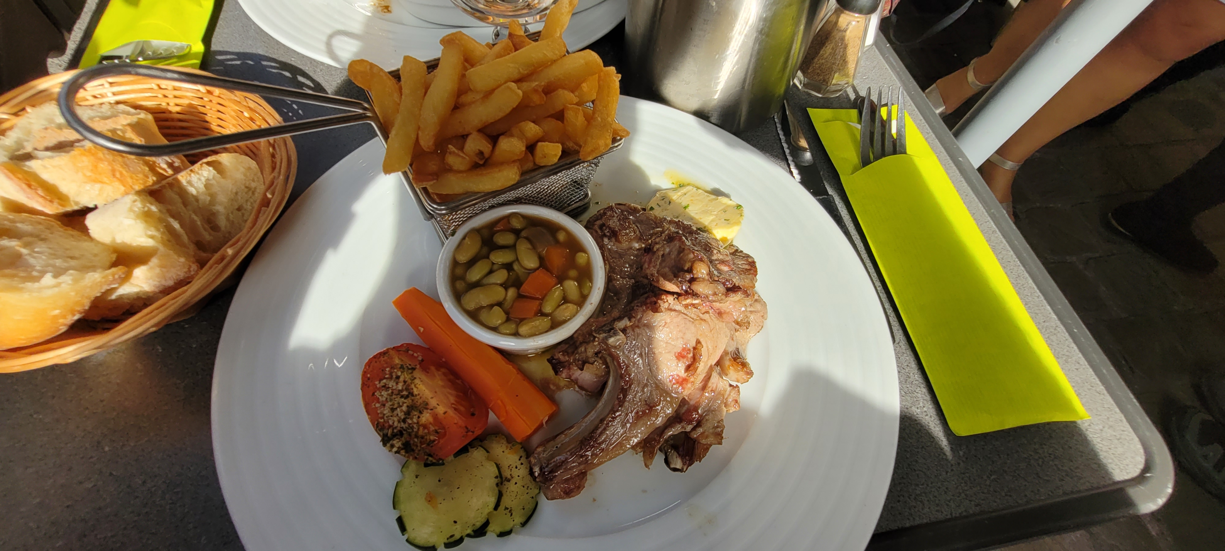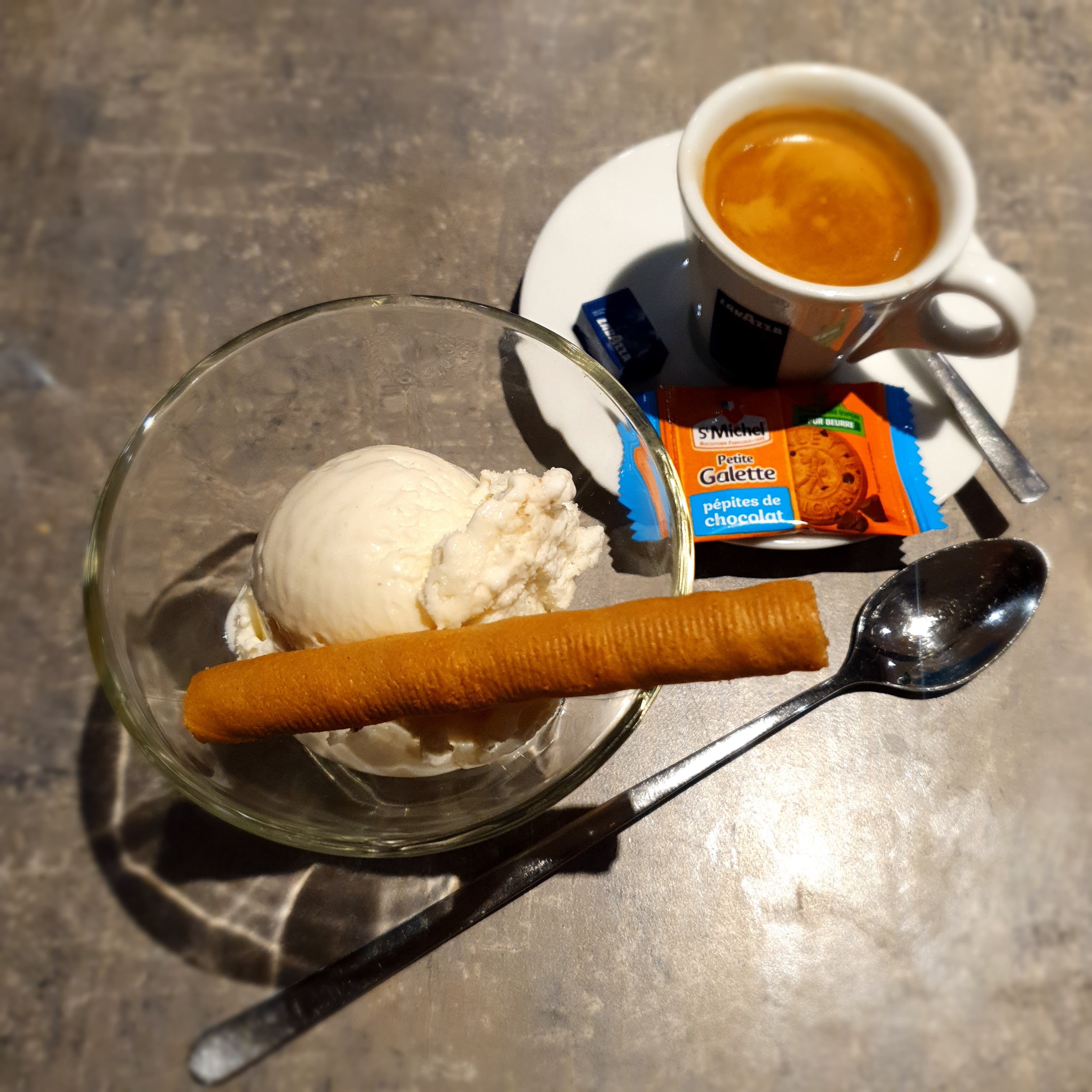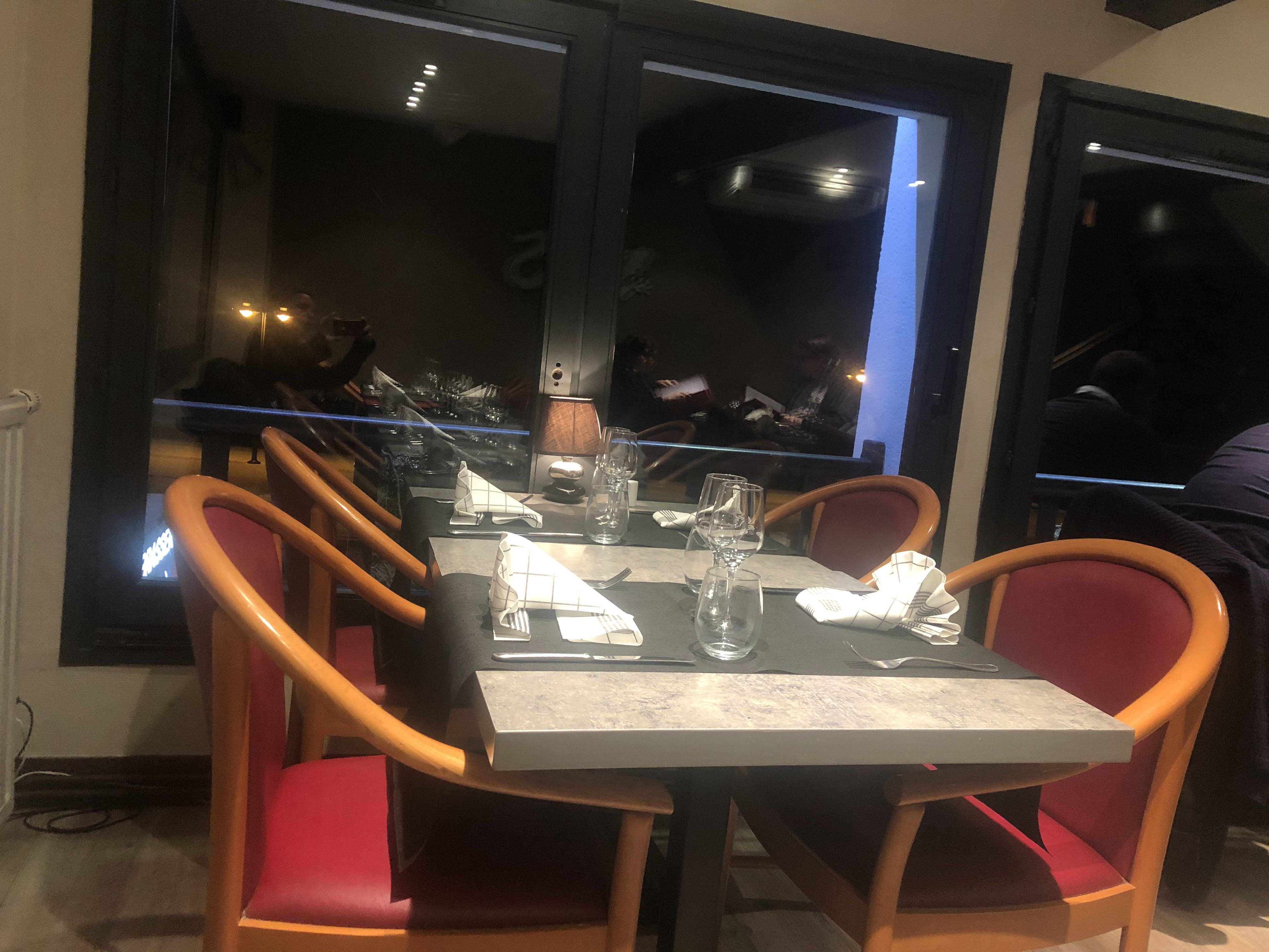 Pour la partie restauration, on valide tous les deux les plats dégustés. Par contre, nous indiquer qu'il n'y a plus de table à l'intérieur sauf réservation, donc du coup nous obliger de nous installer en terrasse ; et ensuite quand même faire entrer des clients (sans réservation, oui je dit bien sans réservation...on l'a bien entendu) pour les installer finalement à l'intérieur sur une table pour 2 pendant notre repas, je trouve cela limite...pour les clients que nous sommes ! Juste les 1er clients du service 😰😰😰