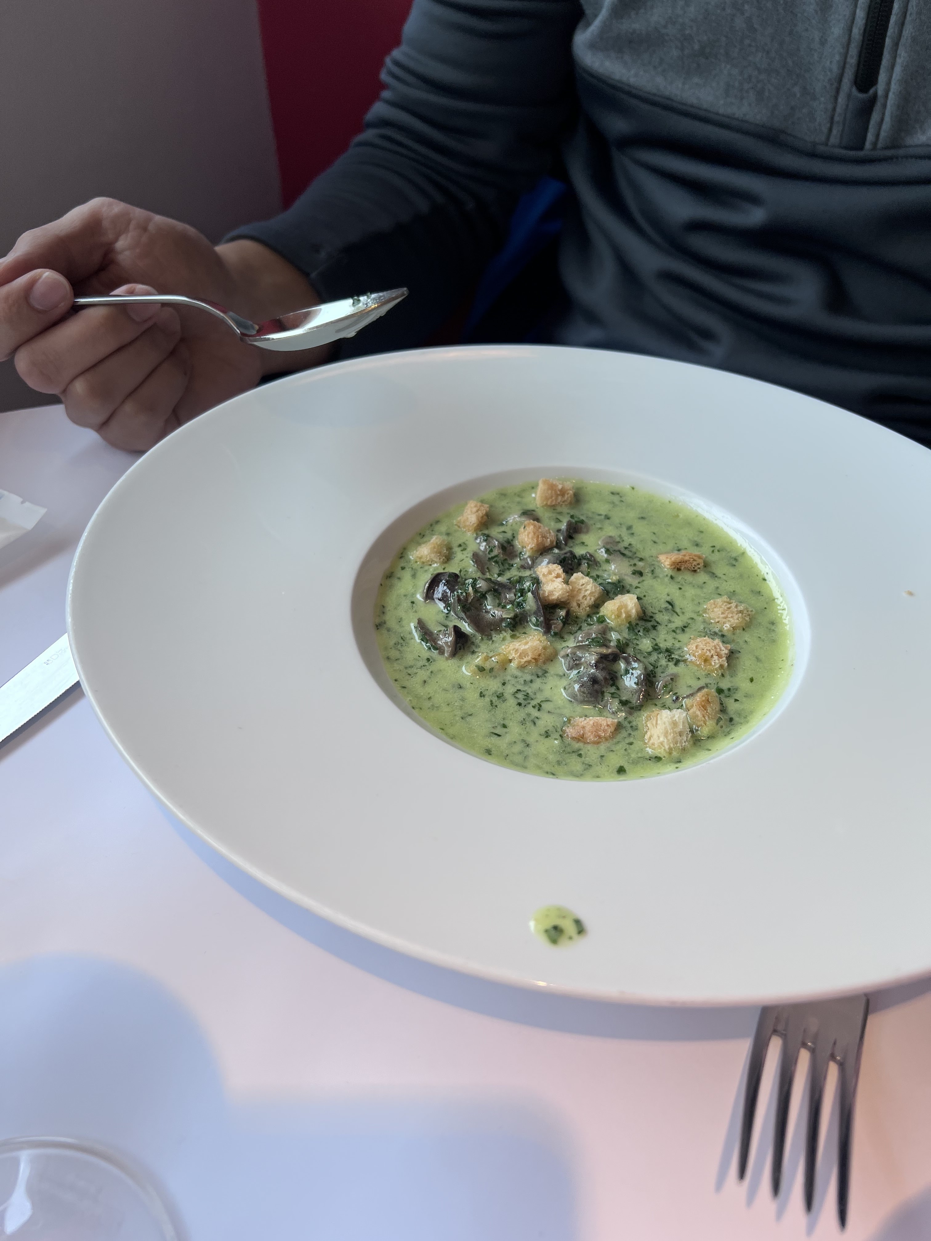 Superbe endroit, la terrasse avec vue sur la Saône est très agréable, l’équipe du restaurant est très accueillante, nous sommes venues en couple et nous étions installés au bord de la terrasse pour profiter de la vue, génial ! Côté entrée nous nous sommes régalés avec le foie gras et le ceviche de daurade, en plat le filet de bœuf façon Rossini et le thon rouge mi cuit étaient super bons également, en revanche un léger bémol pour les desserts avec le Paris Brest, pour 2 nous en avons eu pour 148€ avec un verre de vin et un coca en boisson, un peu cher pour le coup mais le cadre en vaut le détour, heureusement que nous avions une carte cadeau ce qui nous a permis de profiter de ce dîner en économisant 75€, je conseille malgré tout d’aller manger dans ce restaurant qui incarne bien l’esprit Georges Blanc !