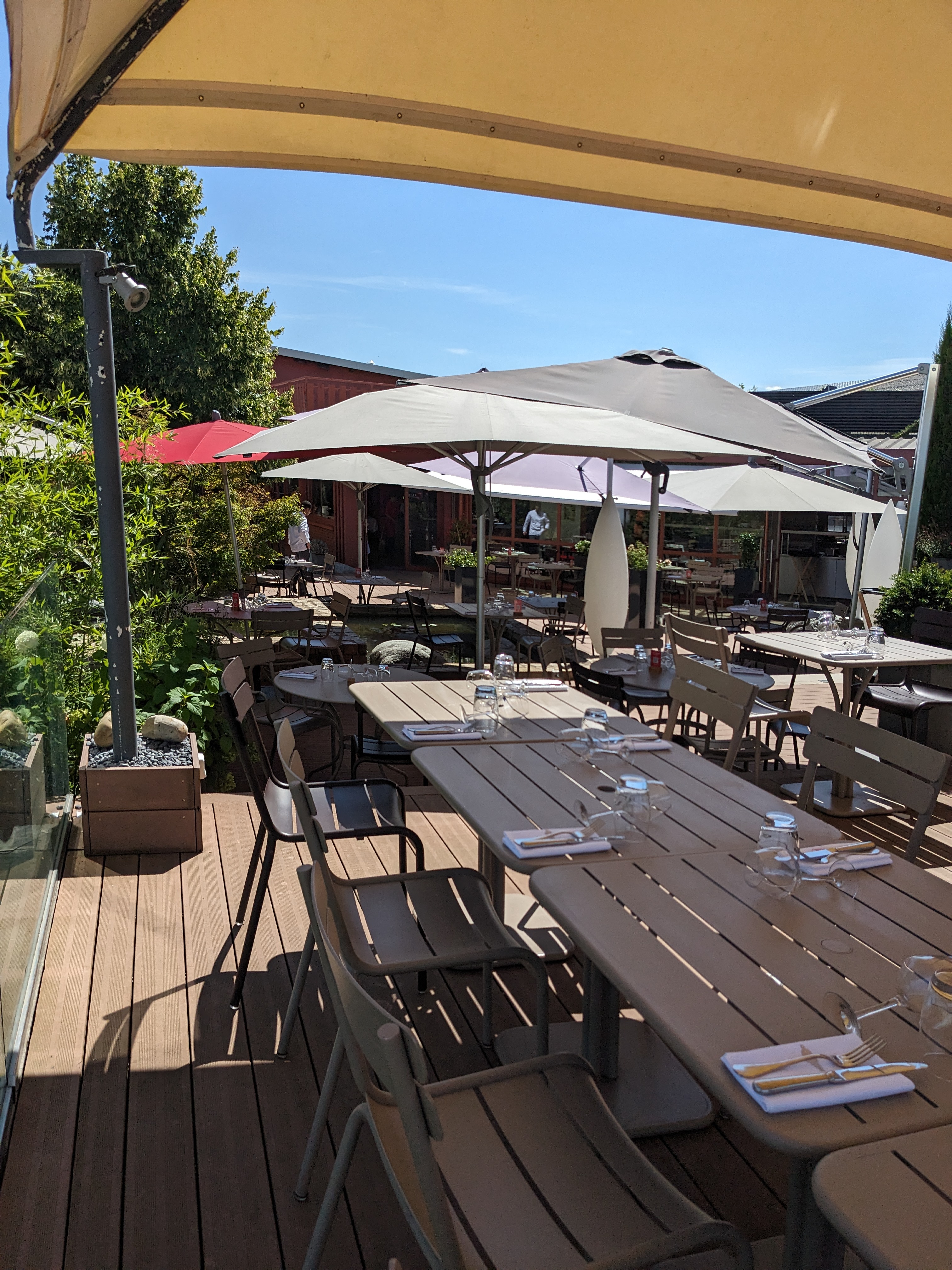 Très bel endroit pour dîner en extérieur, grande terrasse surplombant les bords de Saône et aménagée dans un style moderne et méditerranéen. Service soigné, personnel très agréable. Mets délicieux et présentation des plats très soignée également. Un moment doux et raffine.