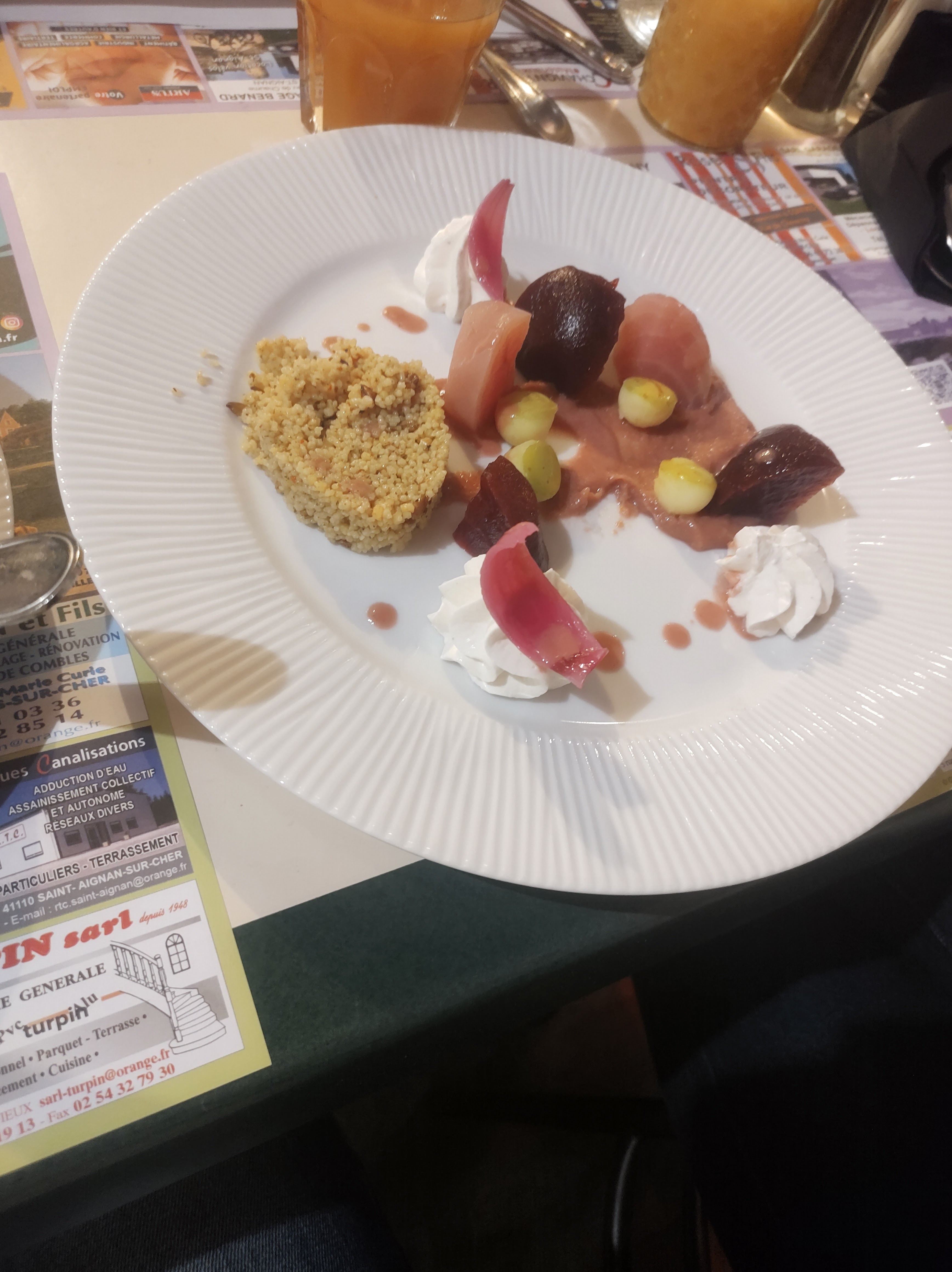 Pause midi après visite zoo Beauval : Menu midi 13€ entrée ( 3 choix )+ plat ( idem) + plateau de fromages+ dessert ( beaucoup de choix 😍😋) accueil chaleureux service rapide et sans temps mort
