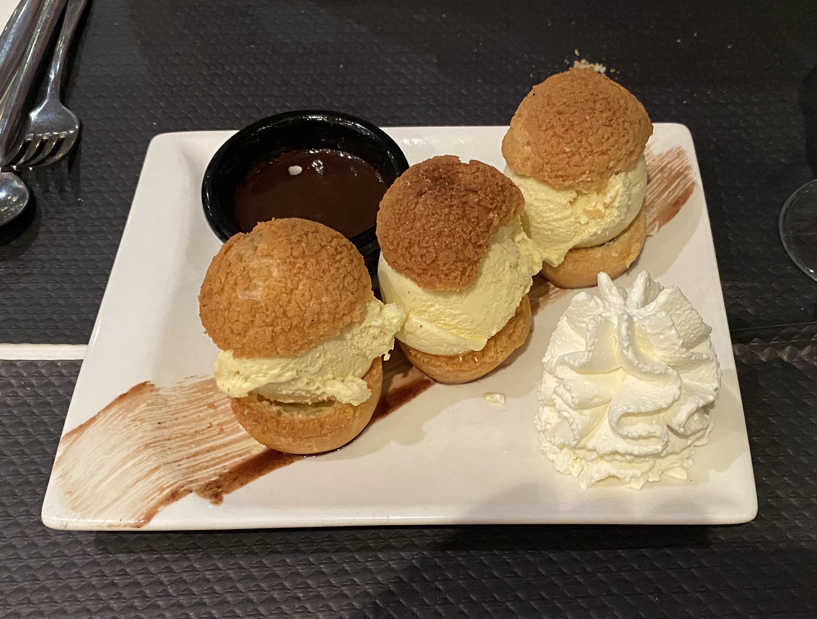 Tres sympa, moules frites sont OK. Tres bonne profiteroles, je recommande.