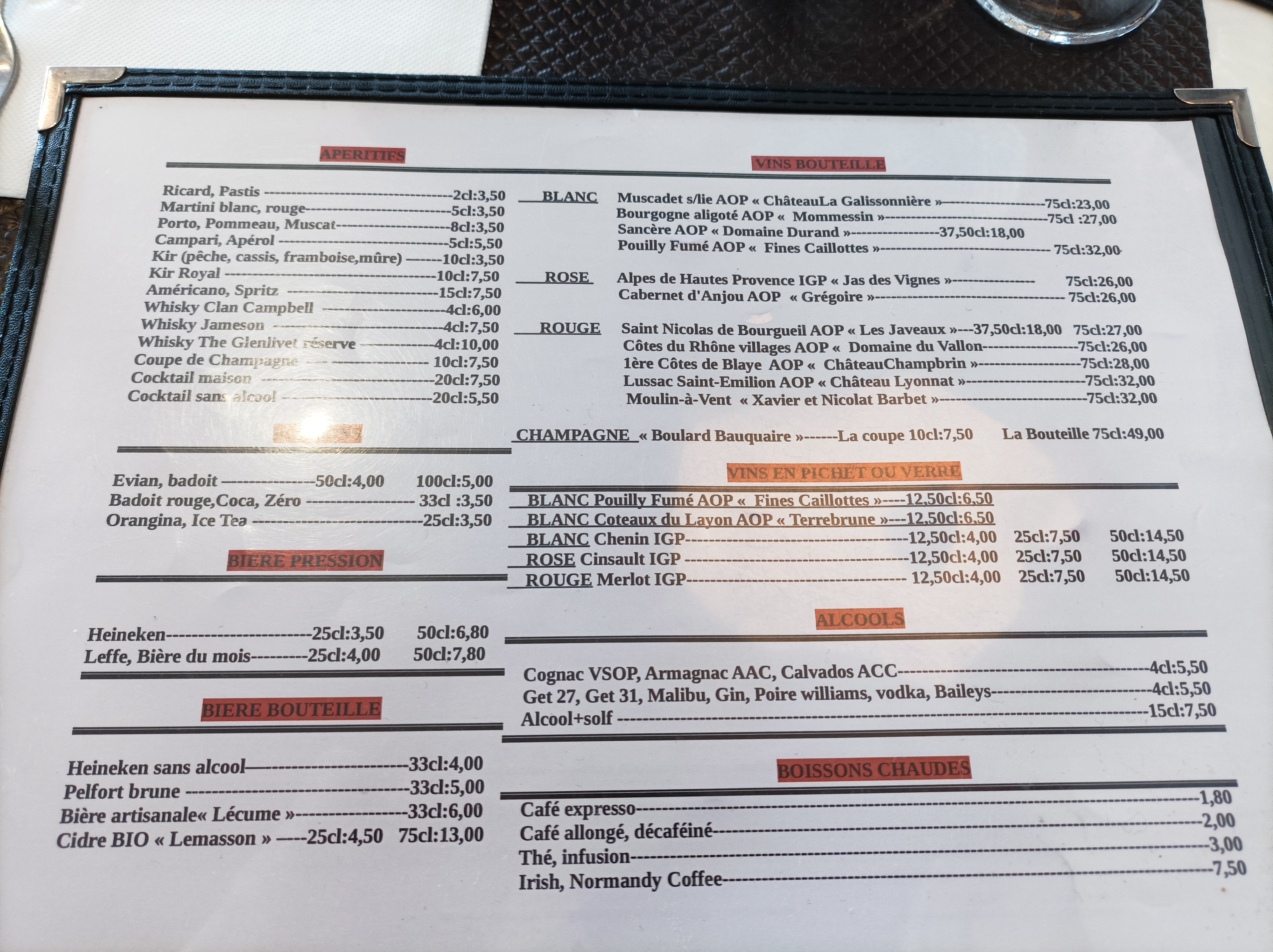C'était très bien. Menu 16,90€ entrée, plat, dessert. Personnel agréable. Une bonne adresse tout au bout du quai.