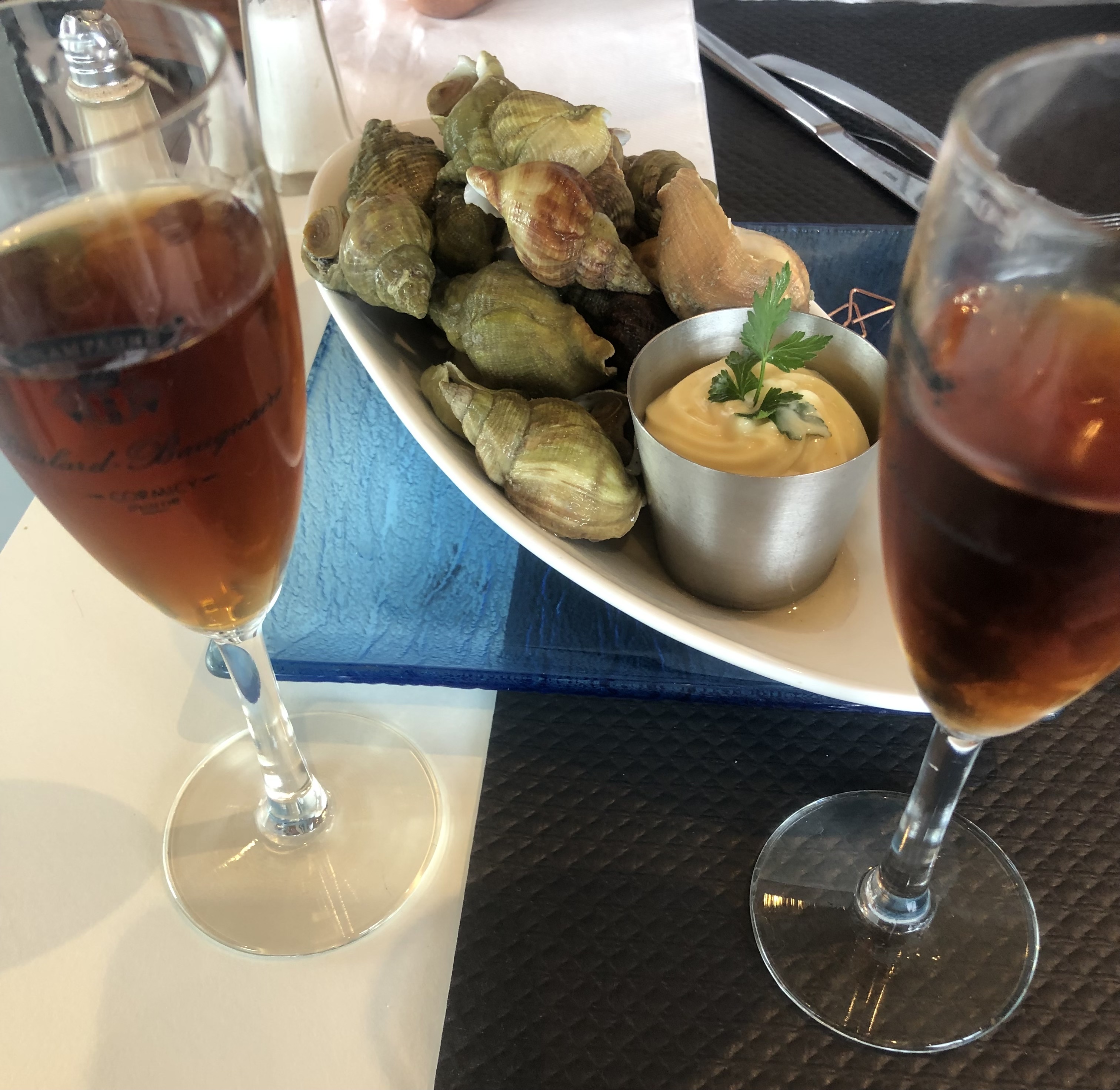 Salade seguin exquise Bulots chauds et rognons de veau : excellent Cocktail normand trop bon Service simple et rapide Nous recommandons sans hésitation