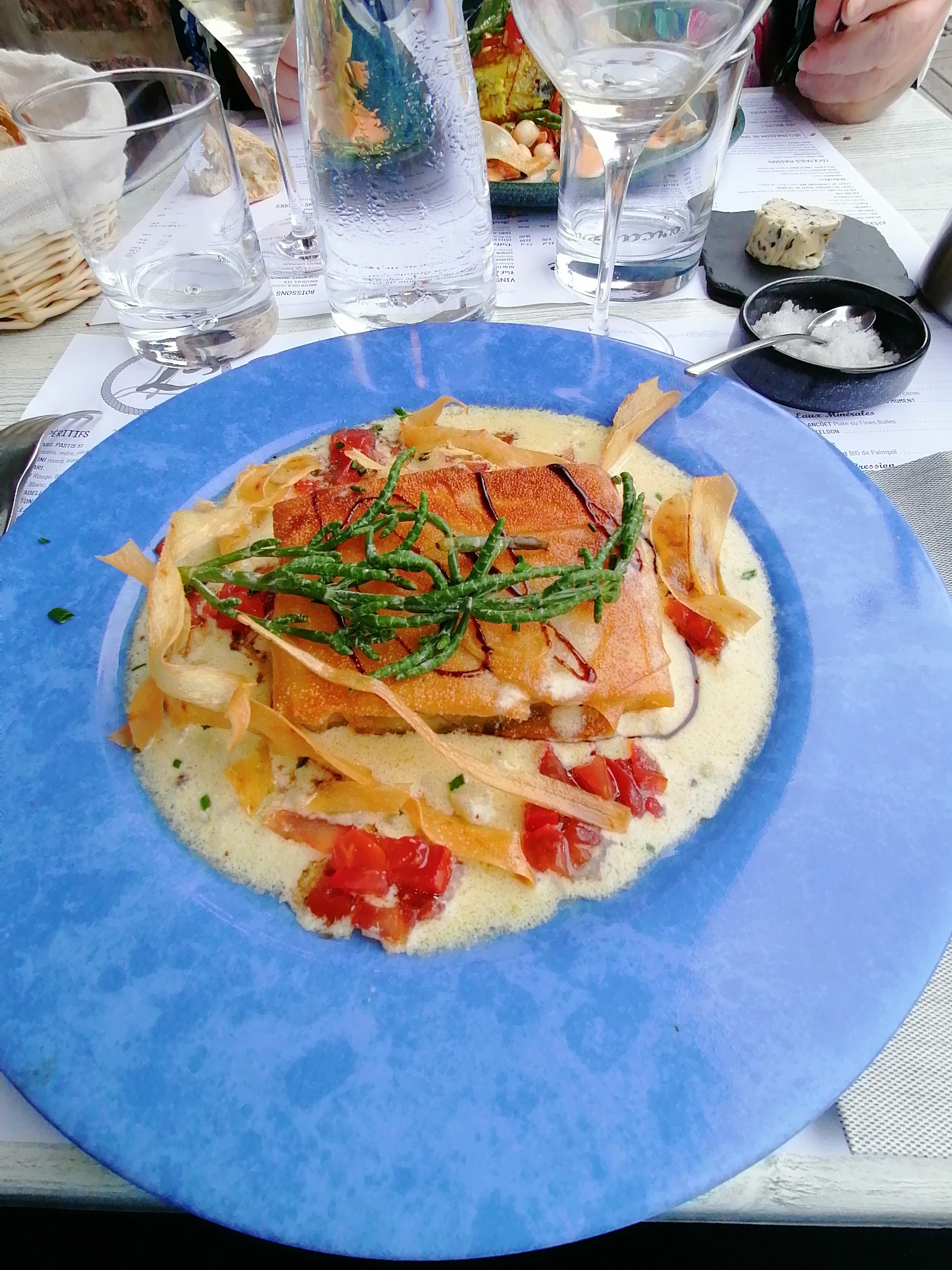 Accueil moyen, sauf pour les habitués reçus par le patron par contre les vacanciers… bof. Risotto à la lotte très bon, par contre déçus des taches sur le mur… j’étais coincée sur la banquette et le mur à ma gauche n’était pas très propre. Bonne note pour le cuisinier