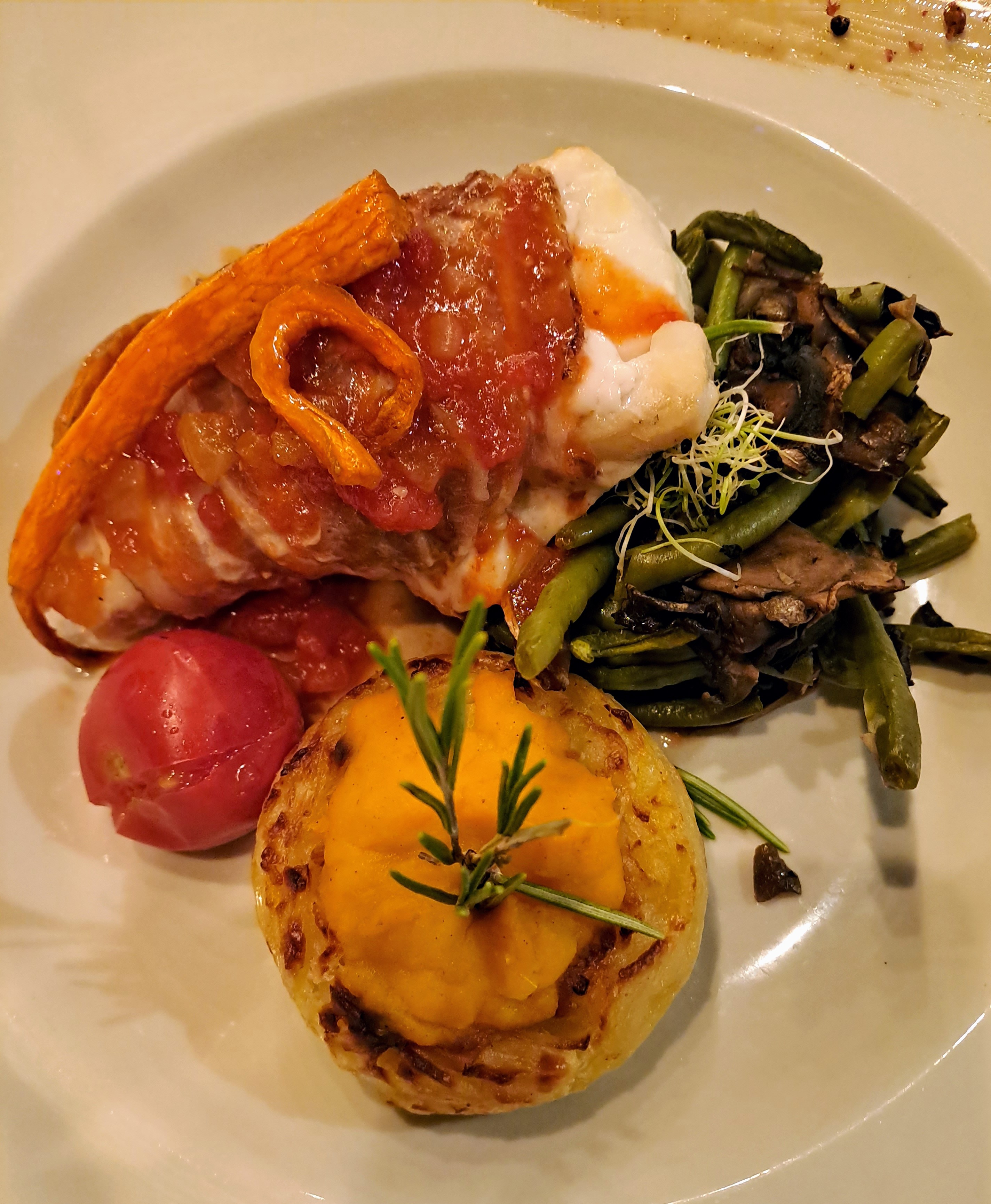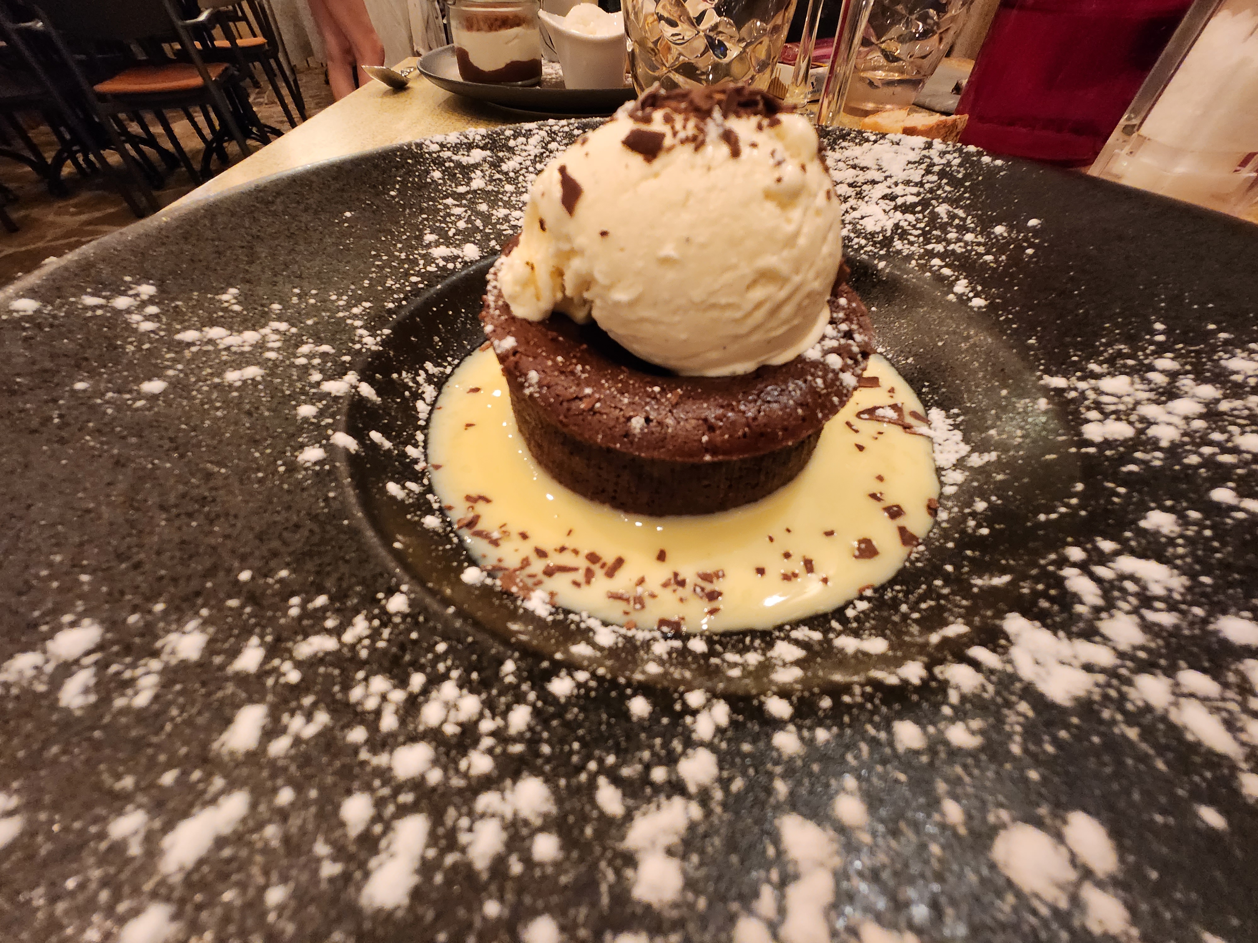 J’ai eu qu’un seul mot à la bouche pendant le repas : incroyable ! Potence de Canard avec une viande parfaitement cuite, de bons légumes et des sauces au truffes et au poivre exceptionnelles (un peu caramélisée pour la dernière). Gérant très sympathique et ouvert à la plaisanterie.