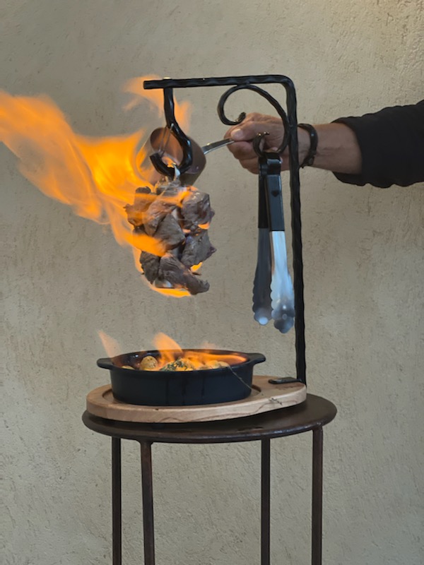 Potences flambées très originales mais hors de prix pour leur qualité ou leur garniture. Accueil très sympa.Viande dure et la potence gambas noix de St Jacques peu garnie pour son prix : 74 euros pour 2 personnes : 6 gambas et 6 noix de St Jacques. Addition très salée : 230 euros pour 5 apéros 2 potences 1 bouteille de vin et d'eau pétillante. Nous avons apprécié le geste commercial d1 digestif offert suite à notre déception.