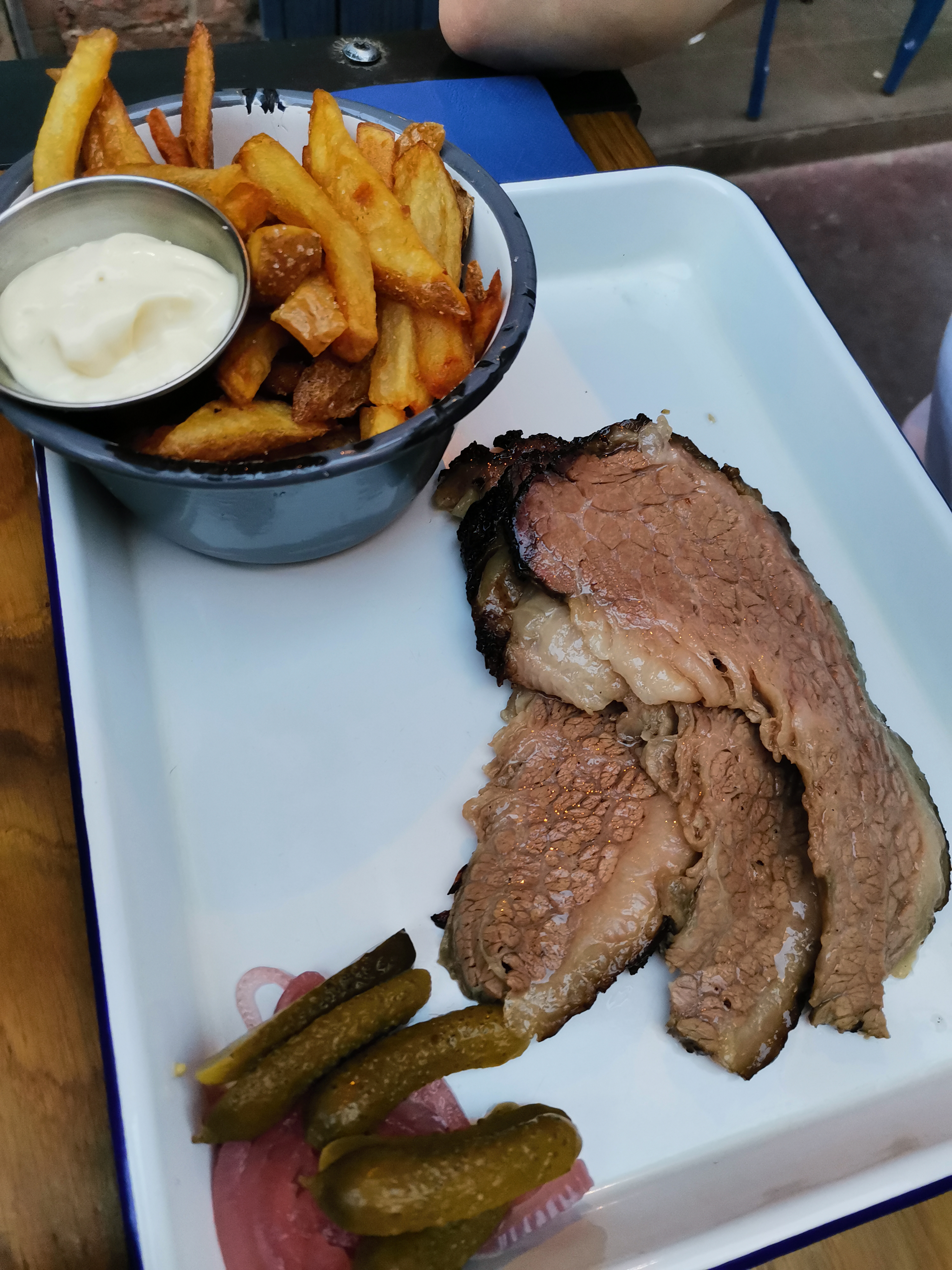 Excellent Brisket! Nous sommes venus pour tester cette pièce de viande fumée et nous ne l'avons pas regretté. Personnel agréable et très attentioné. Nous recommandons sans hésiter 😃