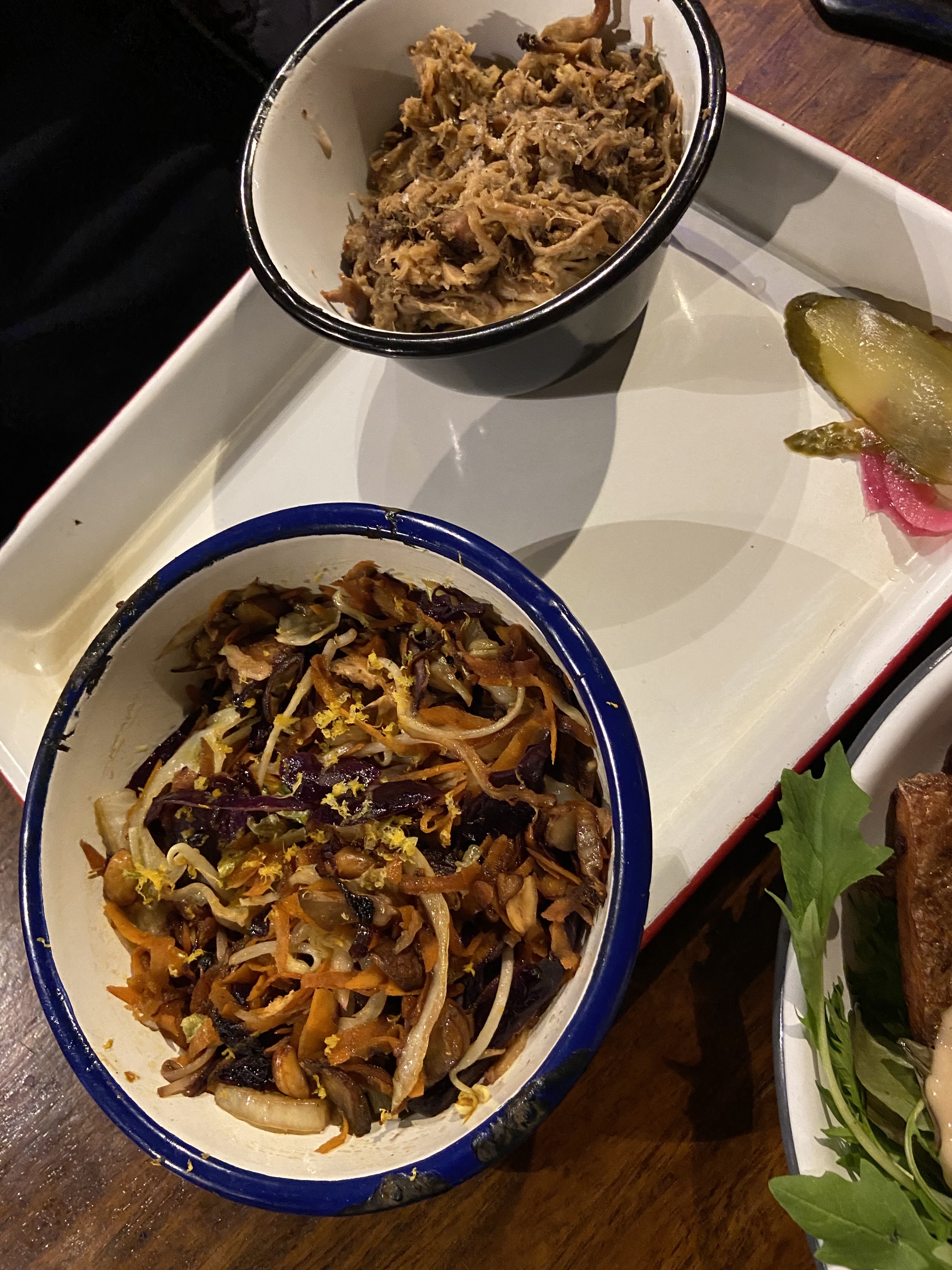 Pulled pork et petit wok de légumes, consistant et délicieux, j'y retournerai !
