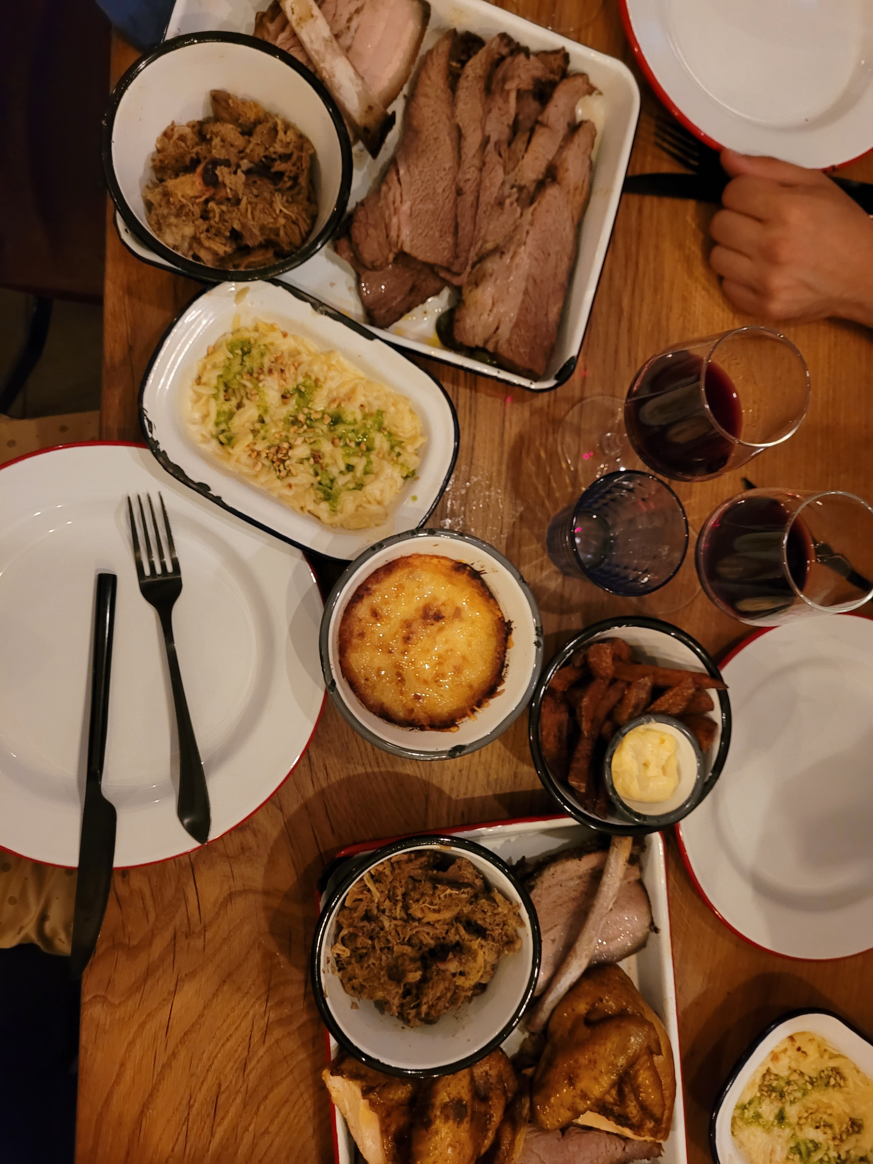 restaurant atypique mais au combien sympathique. nous avons adoré des entrées à partager aux desserts en passant par les viandes succulentes fumés et épicés en finesse sans oublier les accompagnements patatos, choux laqué... nous avons tout le long de notre soirée apprécié les attentions et la bienveillance. merci à toute l equipe