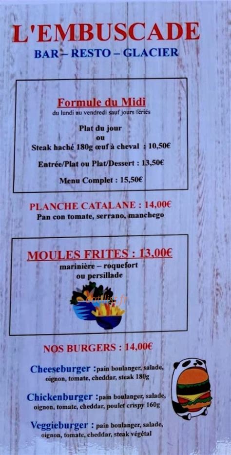 Voici toutes les informations sur le Restaurant L Embuscade qui ce trouve au 2 bis Rue Faidherbe, 62130 Saint-Pol-sur-Ternoise (62). Sur cette fiche vous trouverez les photos, l'adresse, les horaires d'ouverture, le numero de téléphone et les avis clients.Vous pouvez églement rédiger un avis si vous le souhaitez en bas de page.