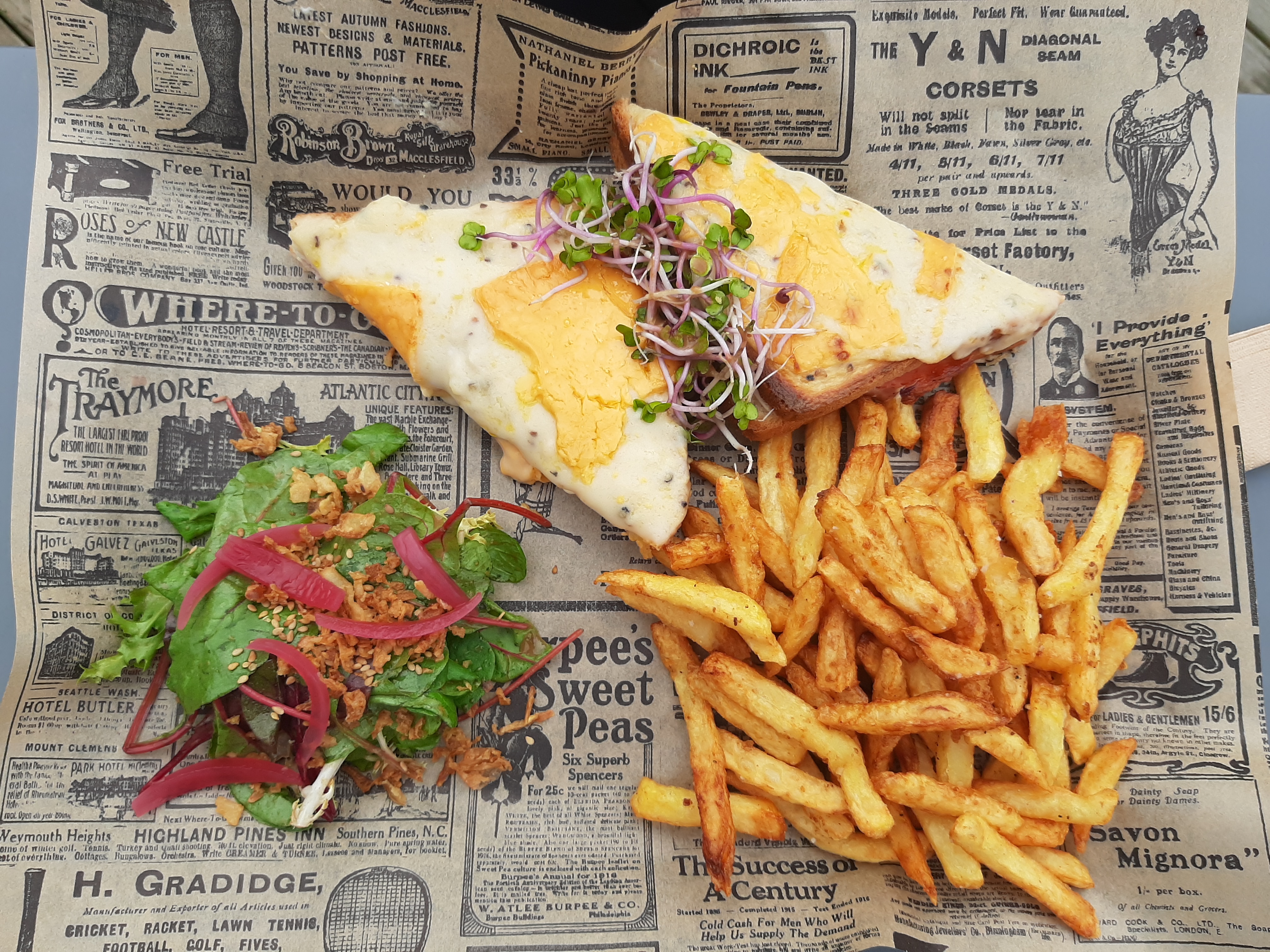 Jolie découverte lors d'un voyage en Normandie Cadre atypique,propre.. Nous avons testé les burgers veggie et croque monsieur,super présentés et délicieux et service rapide Je recommande