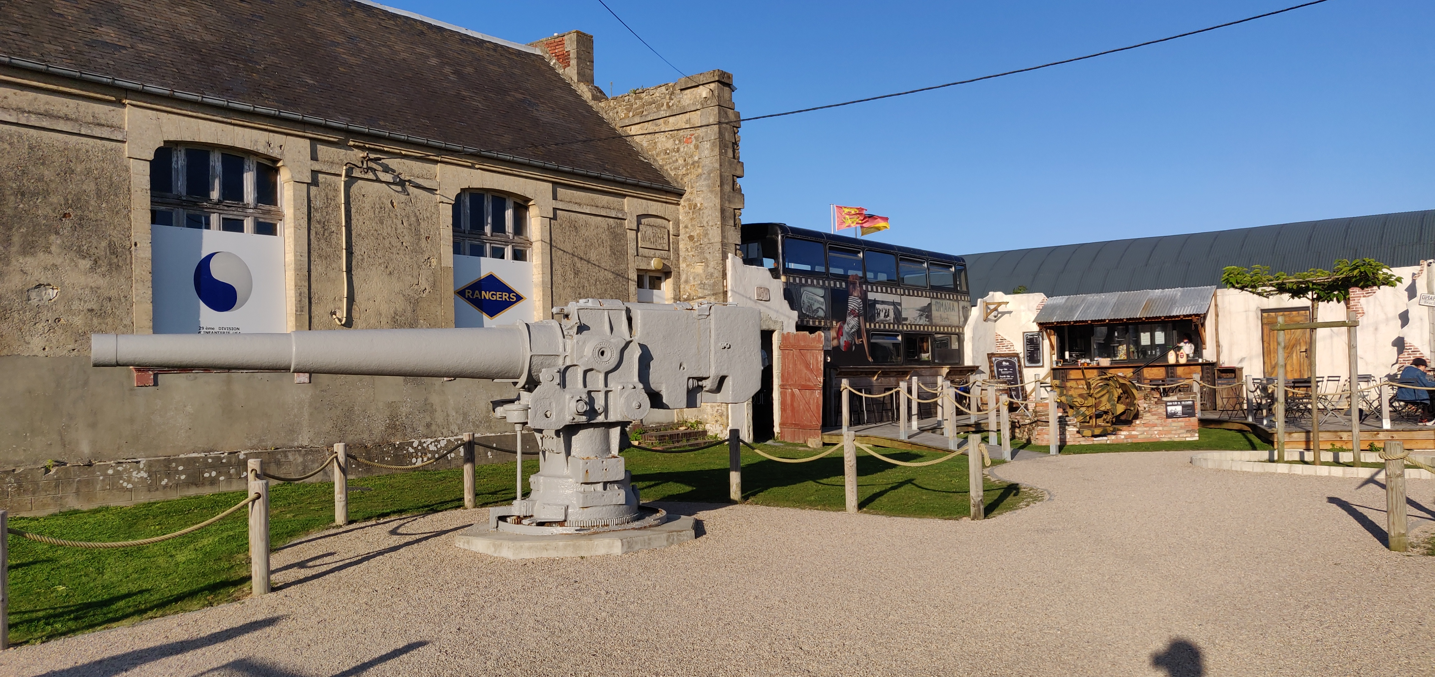 Superbe endroit, malgré que nous avons pas le passe sanitaire. Je vous invite à vous y arrêter pour voir les différentes pièces de l'époque mais également pour savourer un délicieux burger et c'est frites et de boire un bon jus de pommes de la Ferme de la Sapinière. Merci pour cette accueil chaleureux et se délicieux repas. Si vous avez pas le passe sanitaire pour manger sur place, vous avez les bords de la plage de Omaha Beach, tout en respectant la nature.