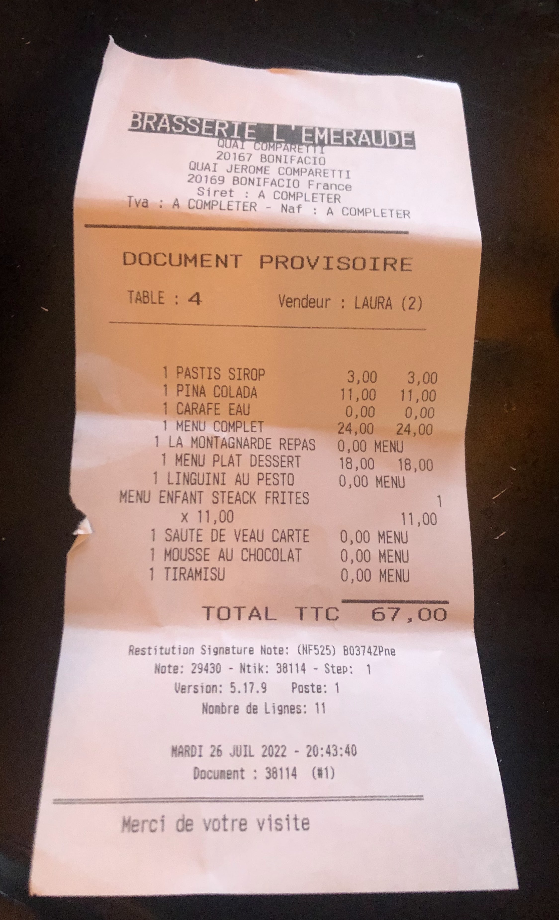 Verres sales, serviettes sales… Le repas est « bon »… comme l’addition extra pour touristes étrangers. Cordiale au minimum, prix maximal