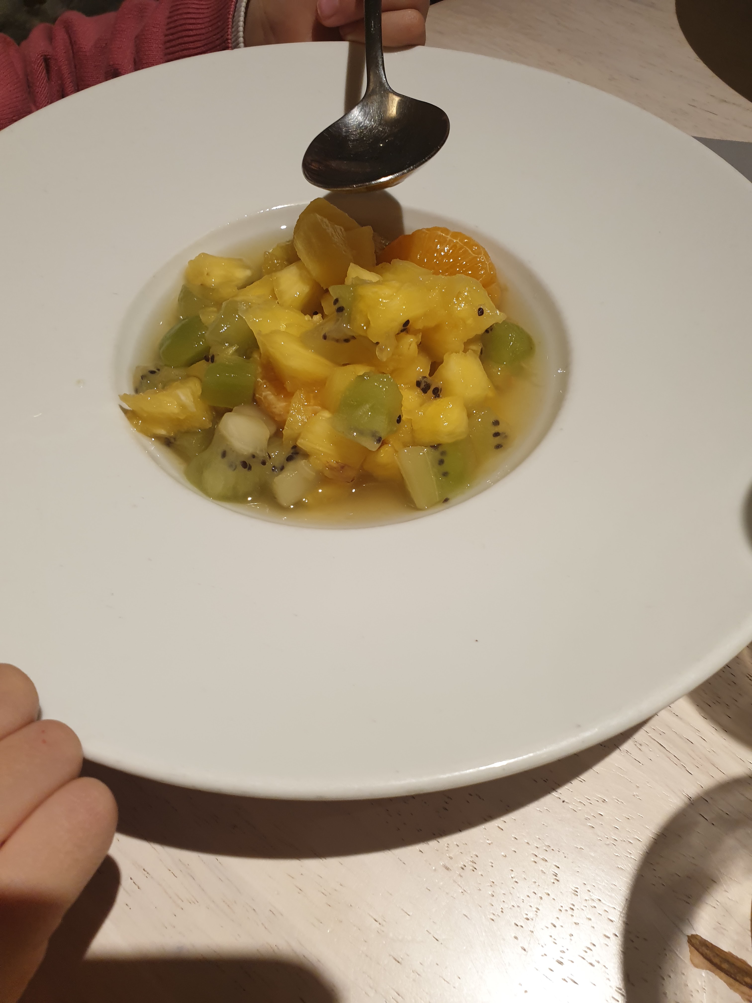 Déjeuner à 4 : 2 adultes et 2 enfants. Très bon accueil , service de qualité tout au long du repas. Menus enfants au top : quantité, qualité ! Pour nous brochette de saumon et brochette de bœuf: un délice Accompagnements de qualité et équilibré :velouté de choux fleur, salade , crudités, frites . Merci