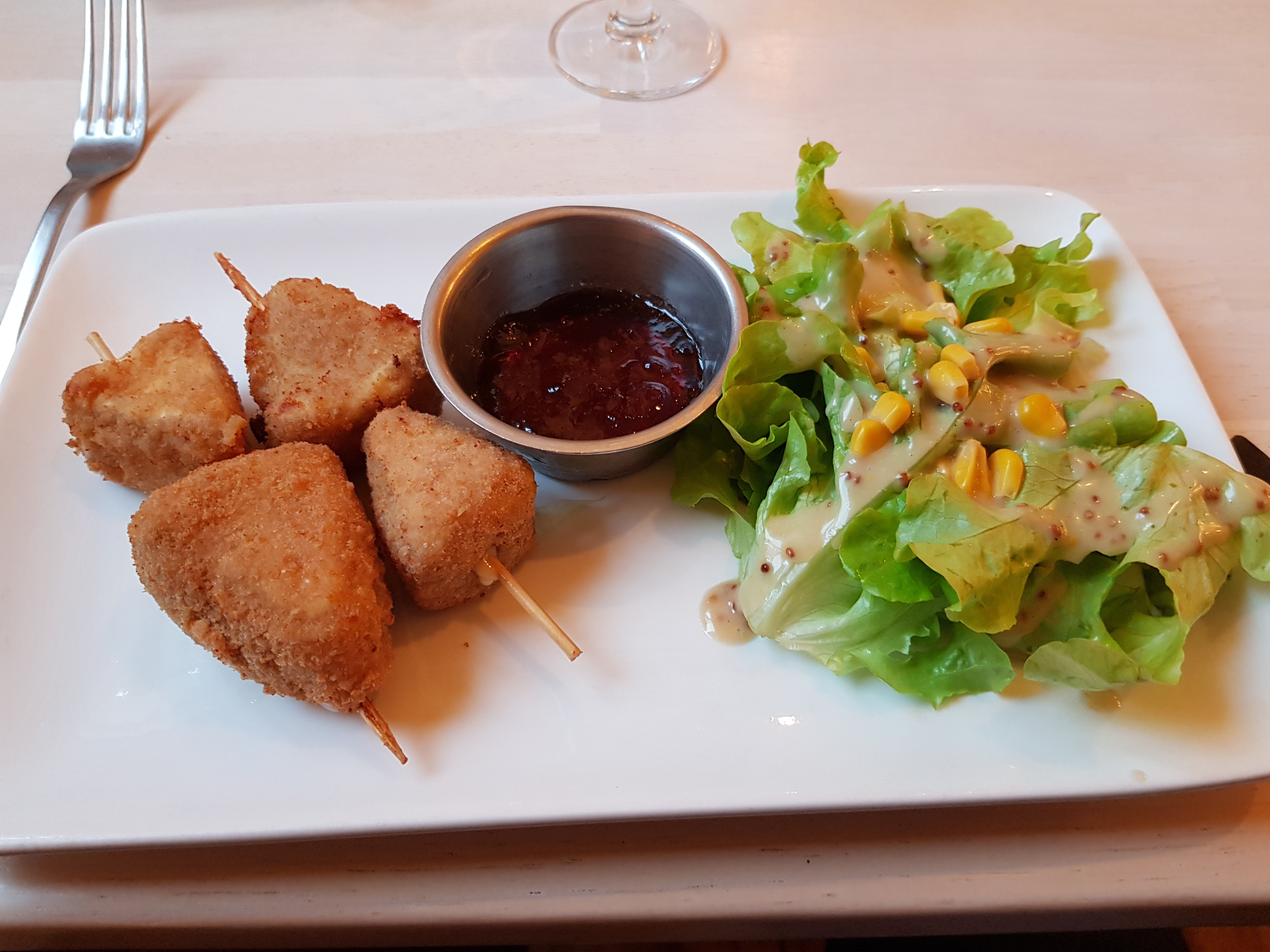 Lieu propice pour passer un bon moment en amoureux ou avec des amis. Leur entrée Brochettes de camembert pané, humm 😋 une tuerie. On peut la prendre aussi en plat ou en dessert. Je recommande ce restaurant. Le service aussi est impeccable.