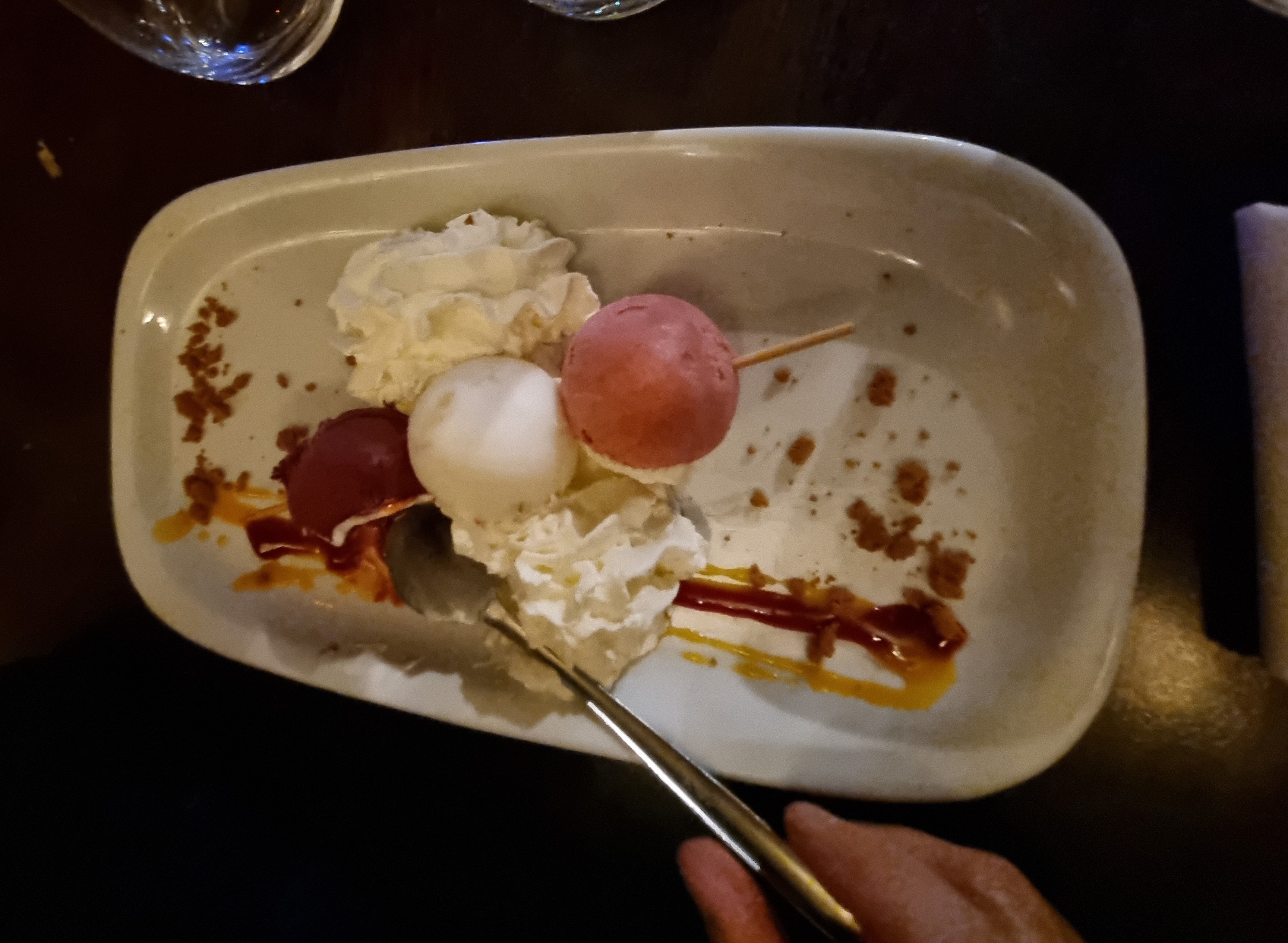 Très bonne découverte ! Les plats sont bons et copieux, c'est un excellent rapport qualité/prix. Et j'ai trouvé original les glaces servies en brochette également 👍