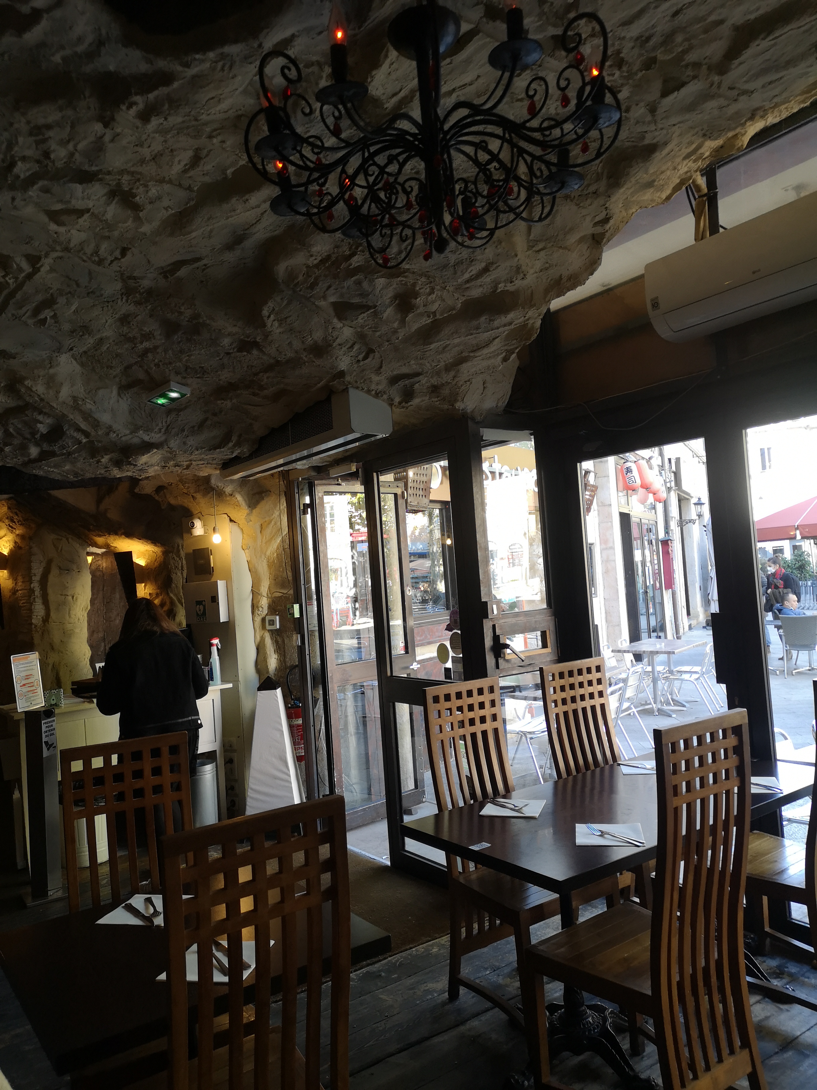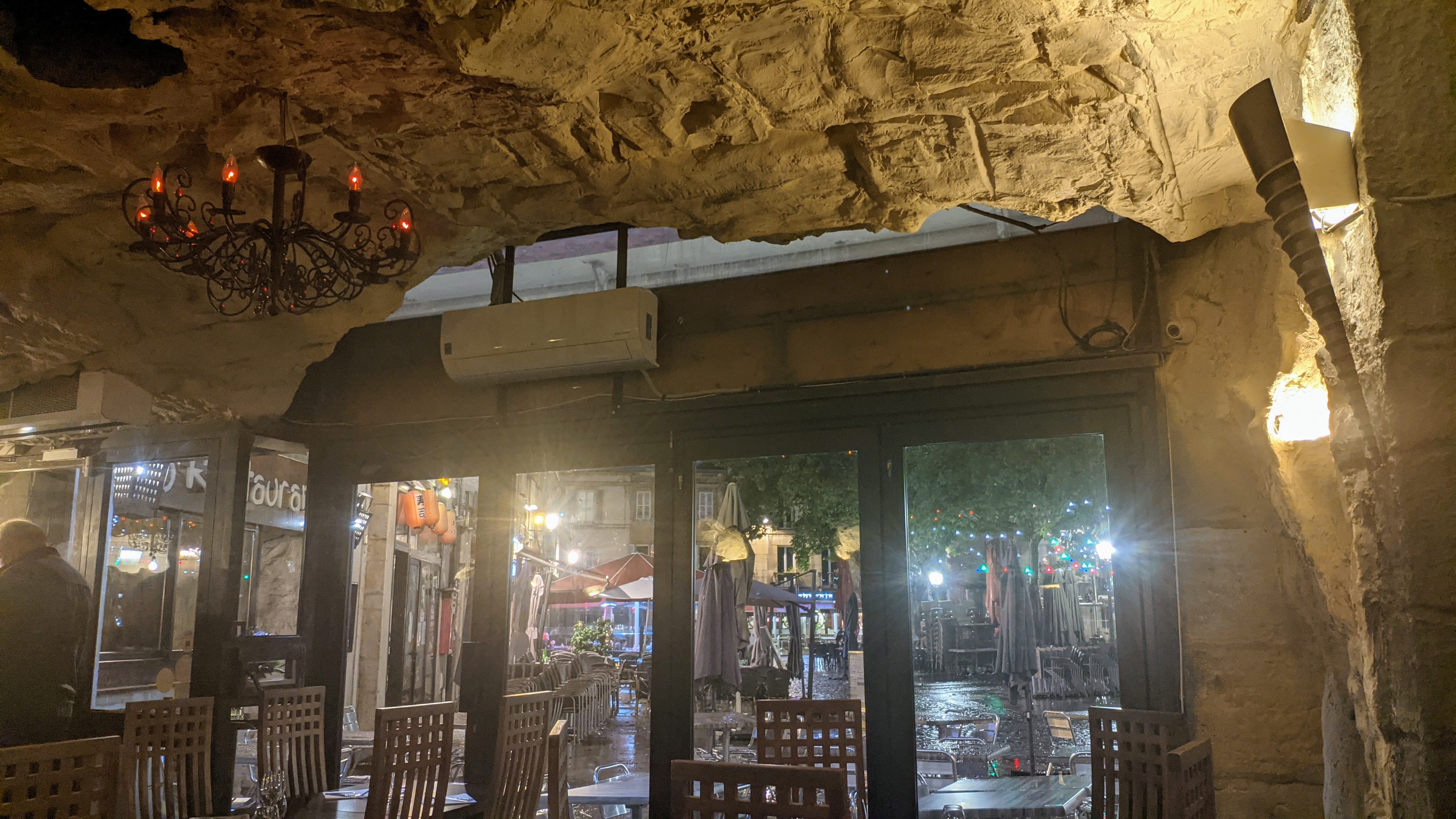 Ambiance sympa dans la grotte à la mauvaise saison ou en terrasse vers la fontaine quand il fait beau. Du choix dans les viandes et autres poissons ou crevettes, la cuisson du boeuf nickel et la viande très bonne, les frites sont bonnes, le service souriant...What else ? Un café, l'addition à prix correct sans être économique, un bon moment cool entre amis.