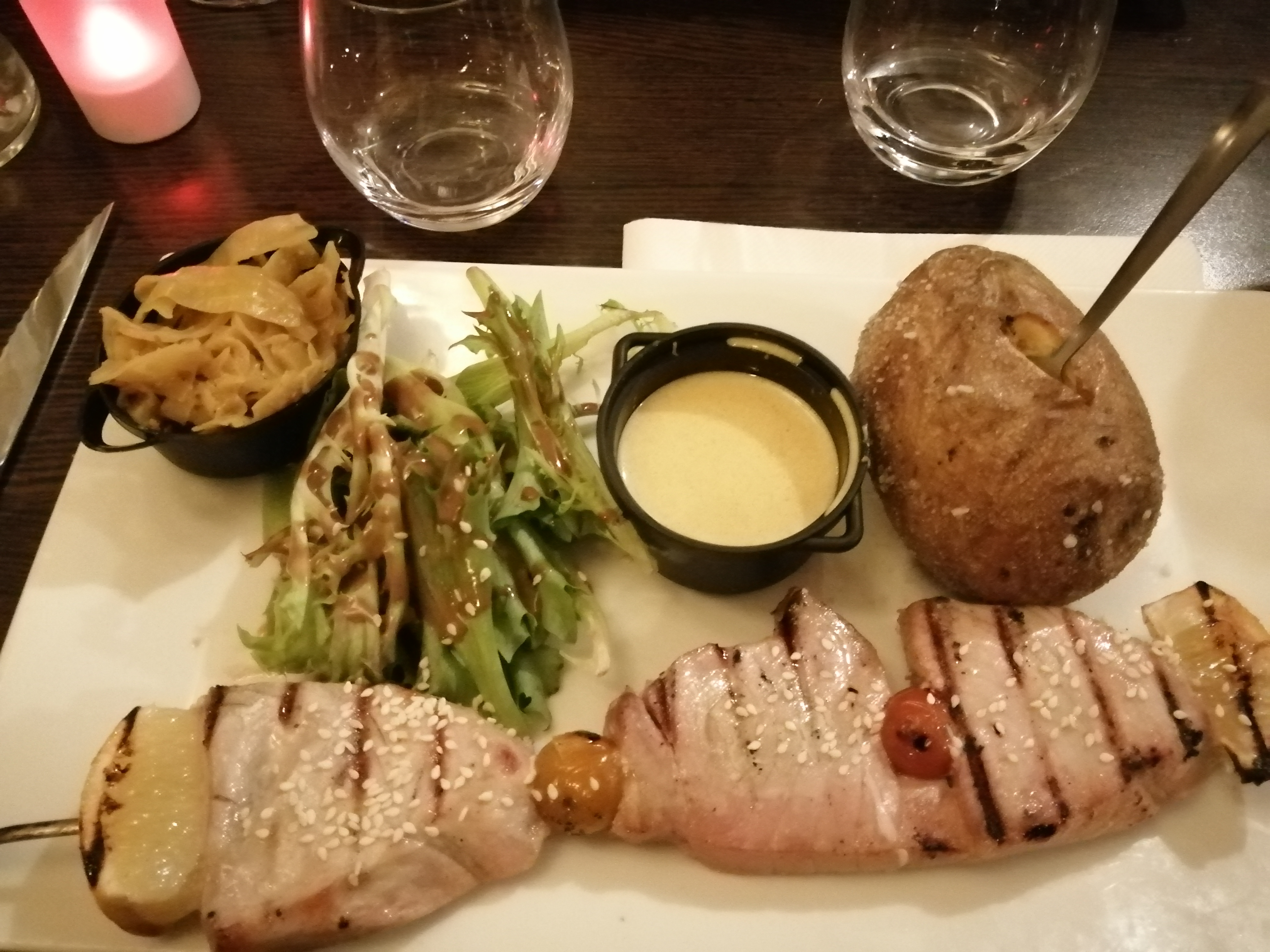 Super moment passé en famille malgré le faite que nous ne pouvons pas être en terrasse ce soir là étant donné qu’il y avait du monde. La cuisine est vraiment excellente et les serveurs sont très sympa ! Je vous conseille de prendre les brochettes de crevettes qui était vraiment délicieuse. La carte est faite de l’entrée jusqu’au dessert pour être en brochette c’est très original comme concept.