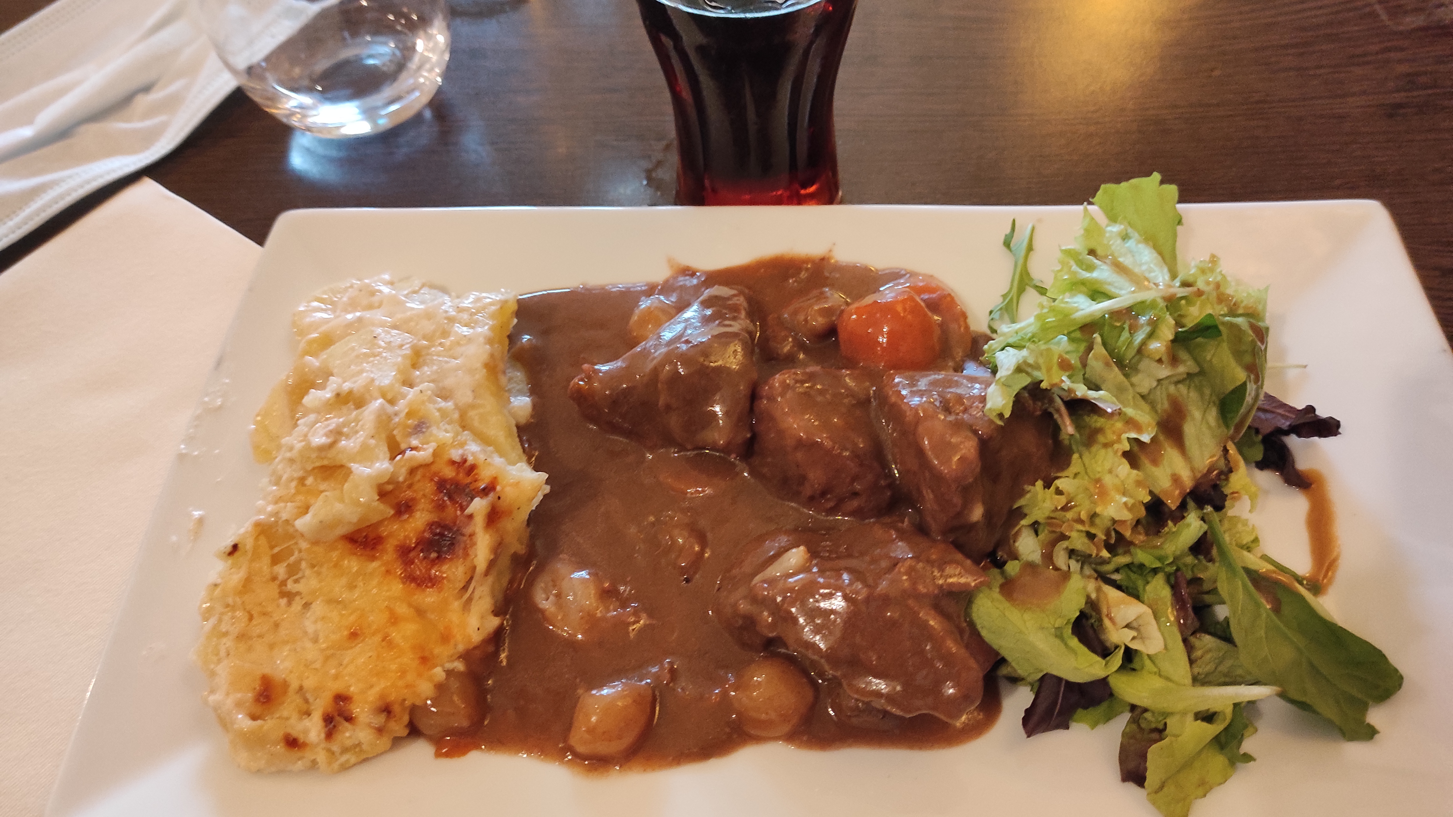 Service attentionné. Belle carte des vins. La potence au bœuf est très bonne (petit bémol sur les sauces un peu trop crémeuses et moins savoureuses). Plat copieux avec frites et salade.