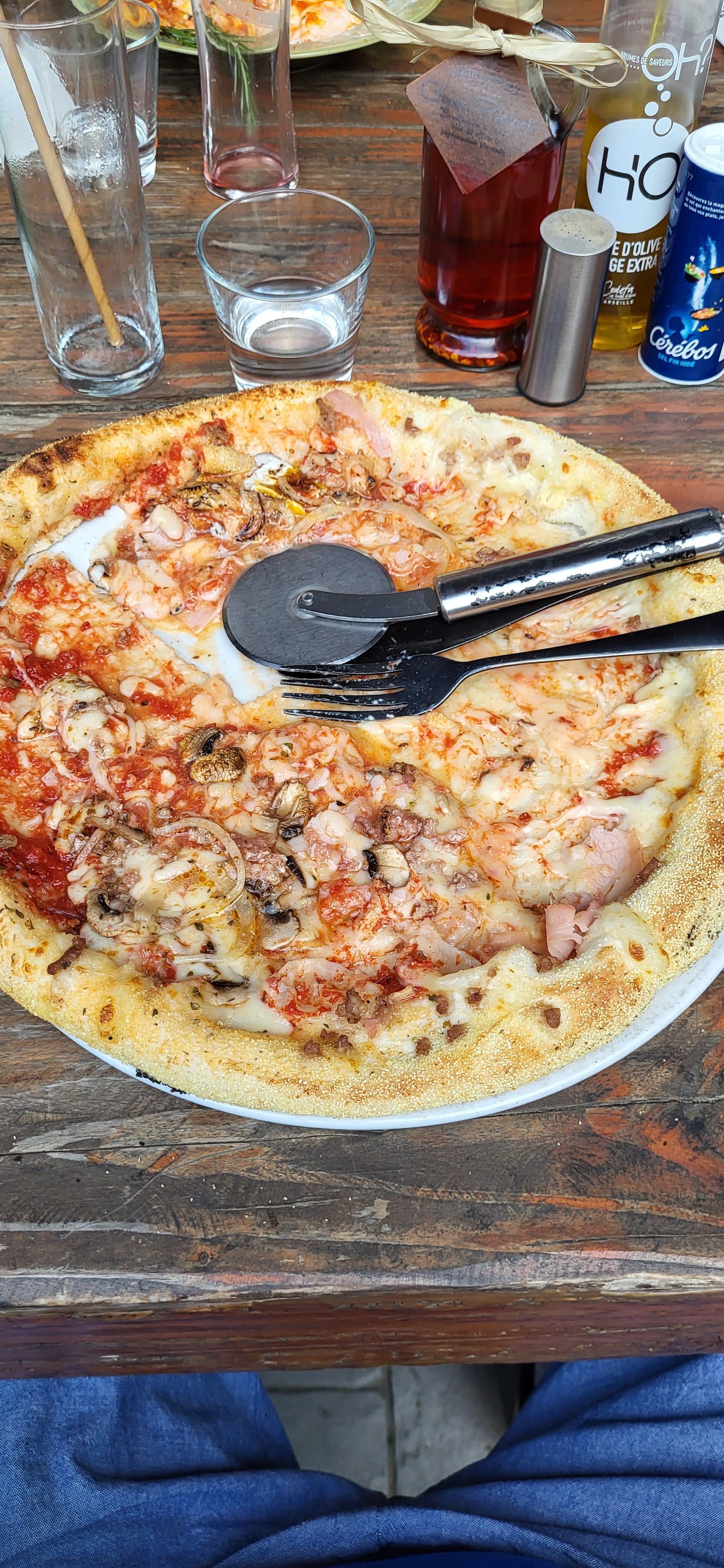 Spécialités de pizzas et pâtes . Pour avoir dégusté déjà les pizzas durant l’été, j’avais envie d’essayer les pâtes. Les pizzas sont dans l’ensemble plutôt bonnes, pas mal de choix. En ceux qui concerne les pâtes, assez bonnes, cuisson trop juste ( al denté c’est 1 à 2 mn de plus ), quantité à revoir ! Le service est limite, peu de personnel pour beaucoup de personnes, temps d’attente un peu long. Les déserts, sympa, belle assiette. L’ambiance en terrasse, croisement de plusieurs musiques, ajouter à cela un fond de batterie désagréable. C’est dommage, j’espère que ce n’est qu’une soirée.