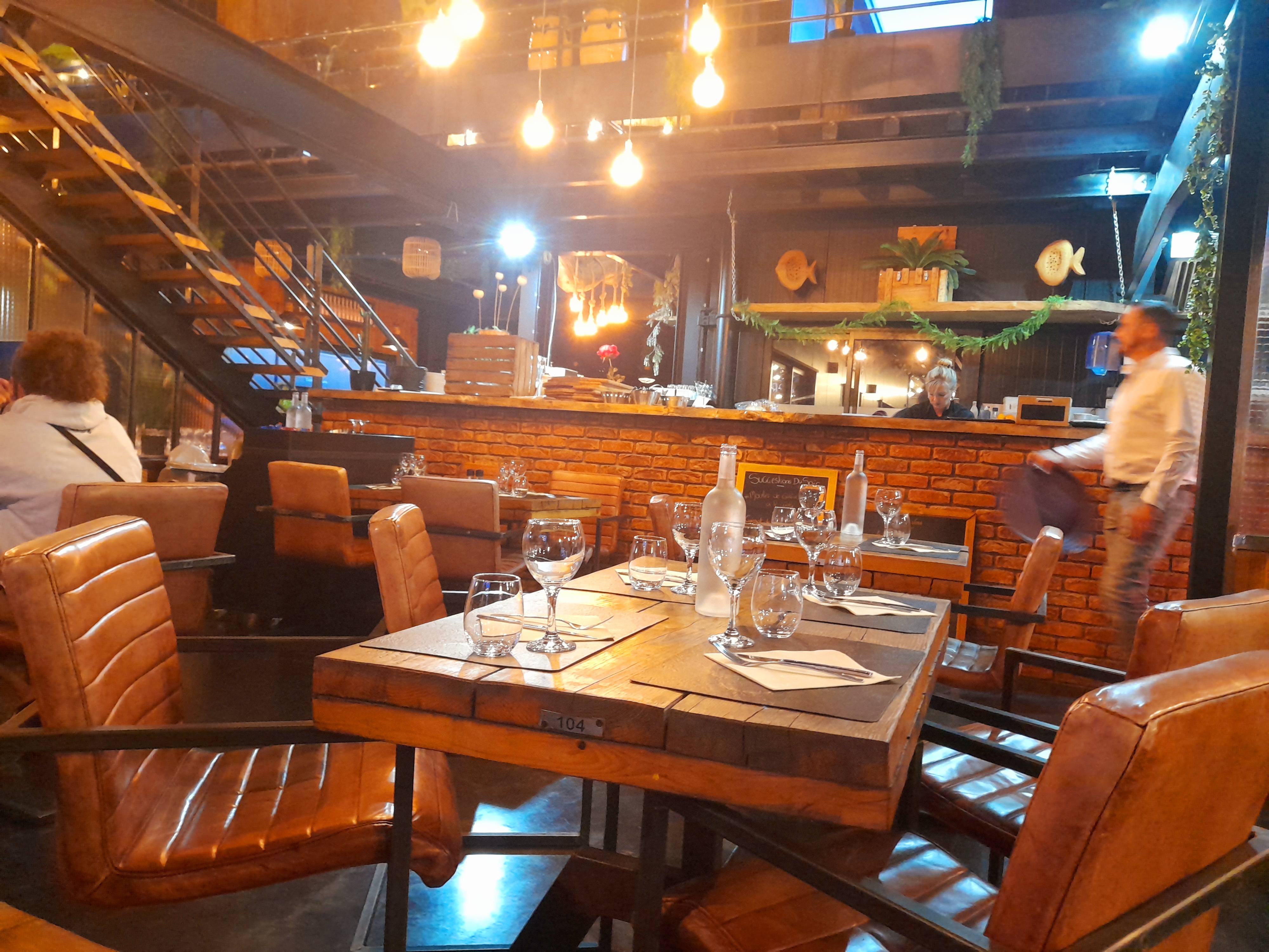 Le cadre magnifique, style industriel branché, sièges en cuir quand même, bois et métal. Par contre, en ayant réservé, une heure (60 minutes) bien bon d'attente avant d'avoir enfin le plat du jour, somme toute quelconque en plus, il y a quelque chose à revoir dans l'organisation je crois. Pour les personnes non pressées je recommande, pour un repas sur le pouce, passez votre chemin. Les tarifs plat du jour intéressant, la carte un peu chère