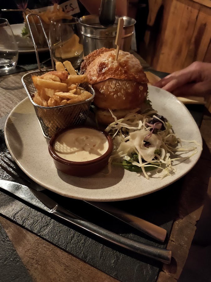 Ambiance agréable (bois brut et métal ) il ya beaucoup d'espace et le restaurant est très lumineux. Les plats sont bons et maison. Toujours une touche de déco dans l'assiette. La petite purée ajoutée au burger est excellente, le burger aussi d'ailleurs ainsi que la sauce qui l'accompagne ! Merci aux cuisiniers ! 😊 Les serveurs sont très souriants et serviables.😊 Les petits plus... leffe ruby pression c'est rare 😍 et le plat du jour change tous les jours avec l'entrée. Petits hics...il manque un menu enfant complet, pas de menus pour les adultes tout est à la carte donc la note monte vite avec une entrée à 8€. A revoir aussi la cuisson des frites plus de miettes que de frites.😔 Je recommande vivement ! Depuis nous y sommes revenus les frites supers merci pour l'effort ! Mais ne pas les saler d'avance ça serait bien. 😊 C'était un samedi soir et il yavait beaucoup de monde pas facile pour tout le monde il manquait des plats et l'attente était longue mais ils ont su se faire pardonner ! 😊 Merci encore.... 😉