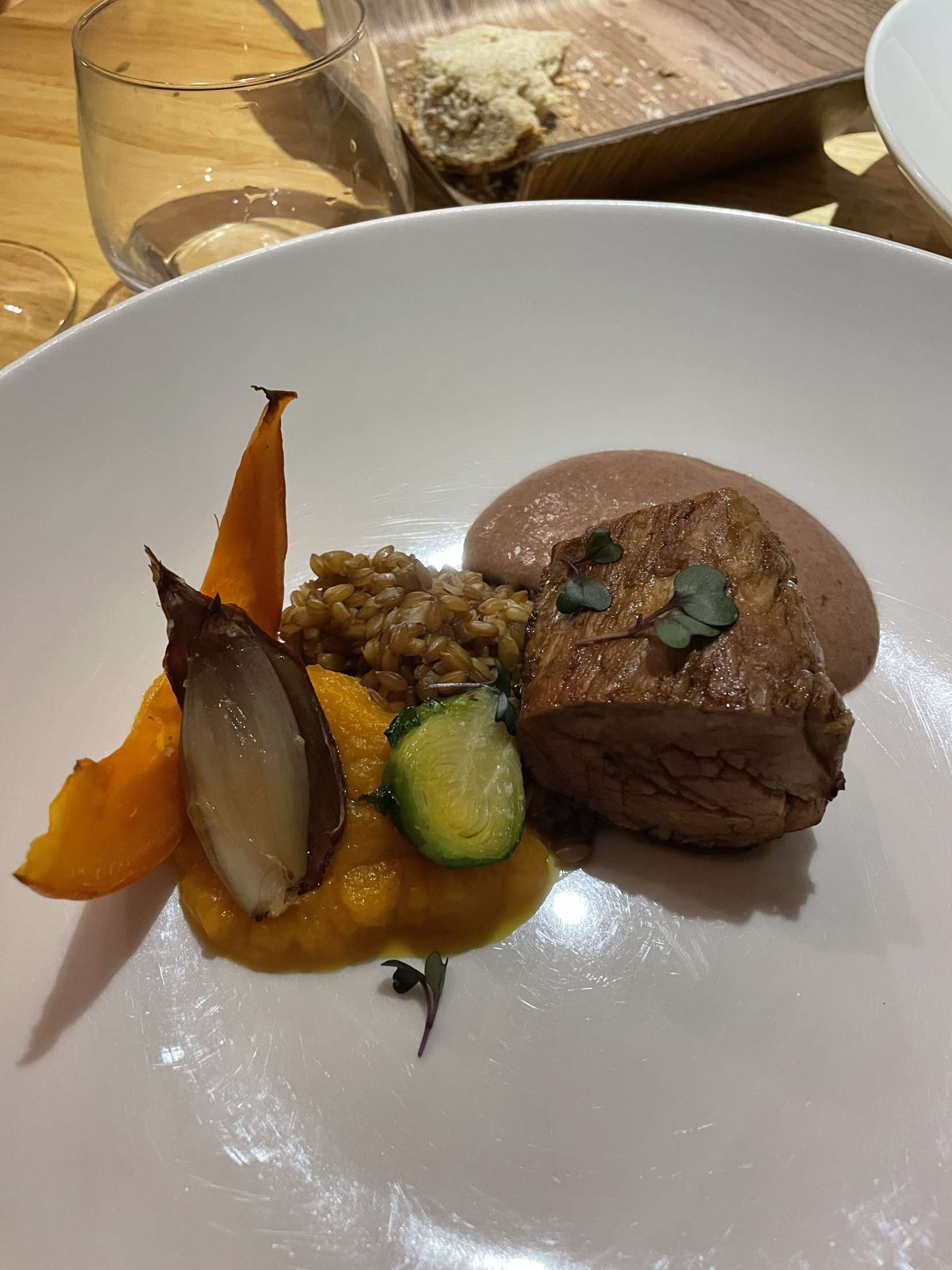 Choix seulement entre 2 menus pour le soir, belle présentation des assiettes, beaucoup d'association de saveurs différentes et originales peut être un peu trop... Ambiance intimiste dans la cave mais un peu froid, manque chauffage. Personnellement, je n'ai pas aimé l'œuf poché avec purée de potiron...
